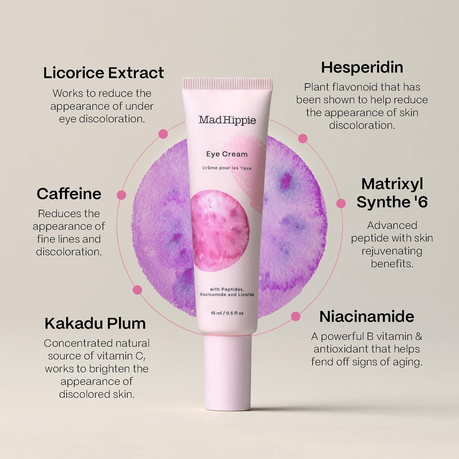 Mad Hippie Eye Cream - Anti-Aging Under Eye Cream for Dark Circles and Puffiness with Niacinamide, with Skin-Brightening Vitamin C, 0.5 Oz