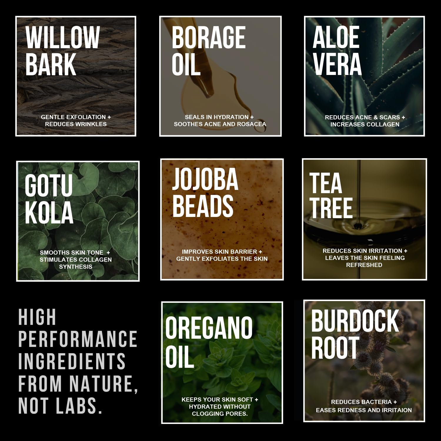 - 🏴 CLEAN INGREDIENTS: Packed with potent natural ingredients including Organic Aloe Vera, Organic Rosehip, Tea Tree Oil, Organic Jojoba and Burdock Root. Our men's face wash revitalizes and promotes cell turnover to defend against signs of aging. Rest assured, it's cruelty-free and formulated to fuel your skin without harmful chemicals.