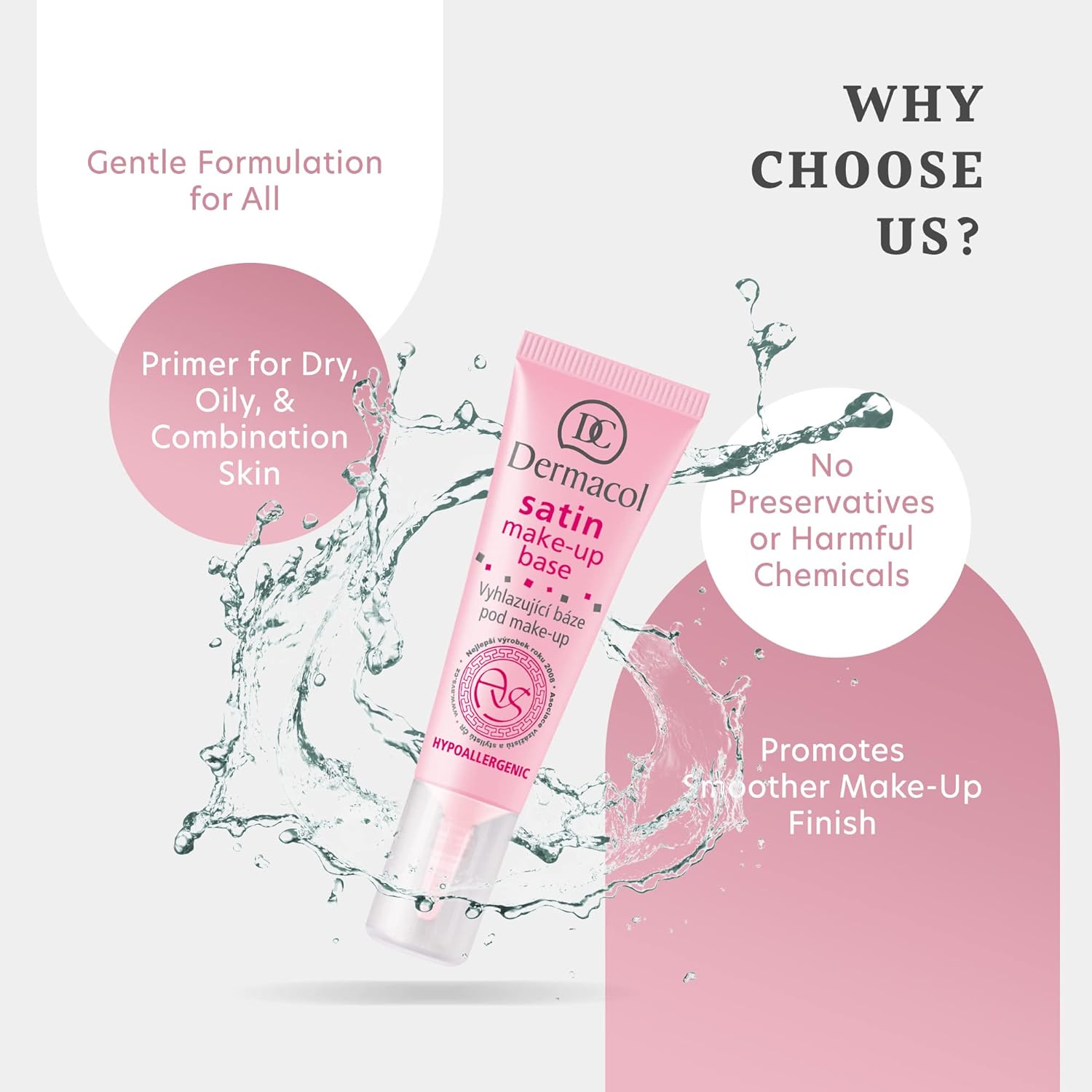 Dermacol - Satin Makeup Base, Matte Face Primer for Wrinkles and Pores, Transparent Makeup Primer for Oily Skin & Dry and Combination Skin, Easy to Blend Pore Filling Primer, No Preservatives, 10 mL