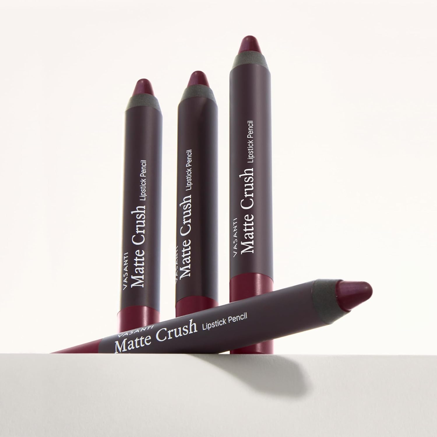 VASANTI Cosmetics Matte Crush Lipstick Pencil (Berry First Kiss - Rich Plum Berry) - Long lasting, Water resisitant & Smudge proof - High Pigmented, Soft Matte Lip Liner Makeup