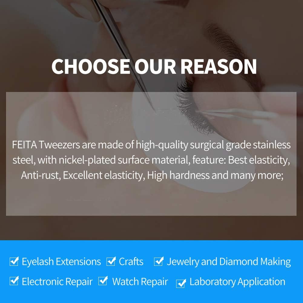 - ♦ FINE TECHNOLOGY - FEITA Professional Eyelash Tweezer Set With Sophisticated fine,they can be adapted to very fine works in the 0.01mm object in a long contact surface.