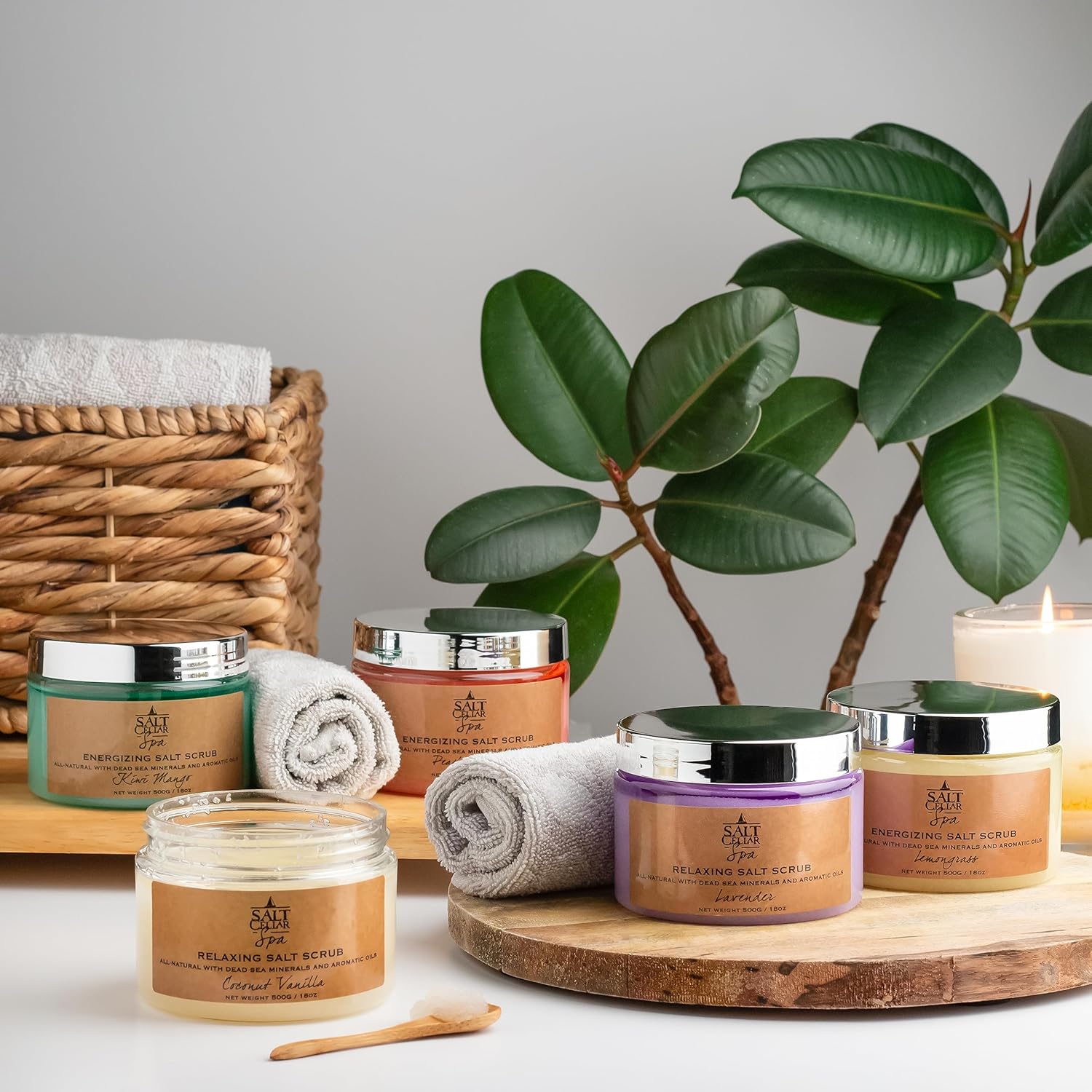 Salt Cellar Spa All-Natural Dead Sea Salt Scrub - Refresh with Coconut Vanilla - Energize, Revive, and Rejuvenate your Skin - Made in Israel, Cruelty-Free, 18 oz.