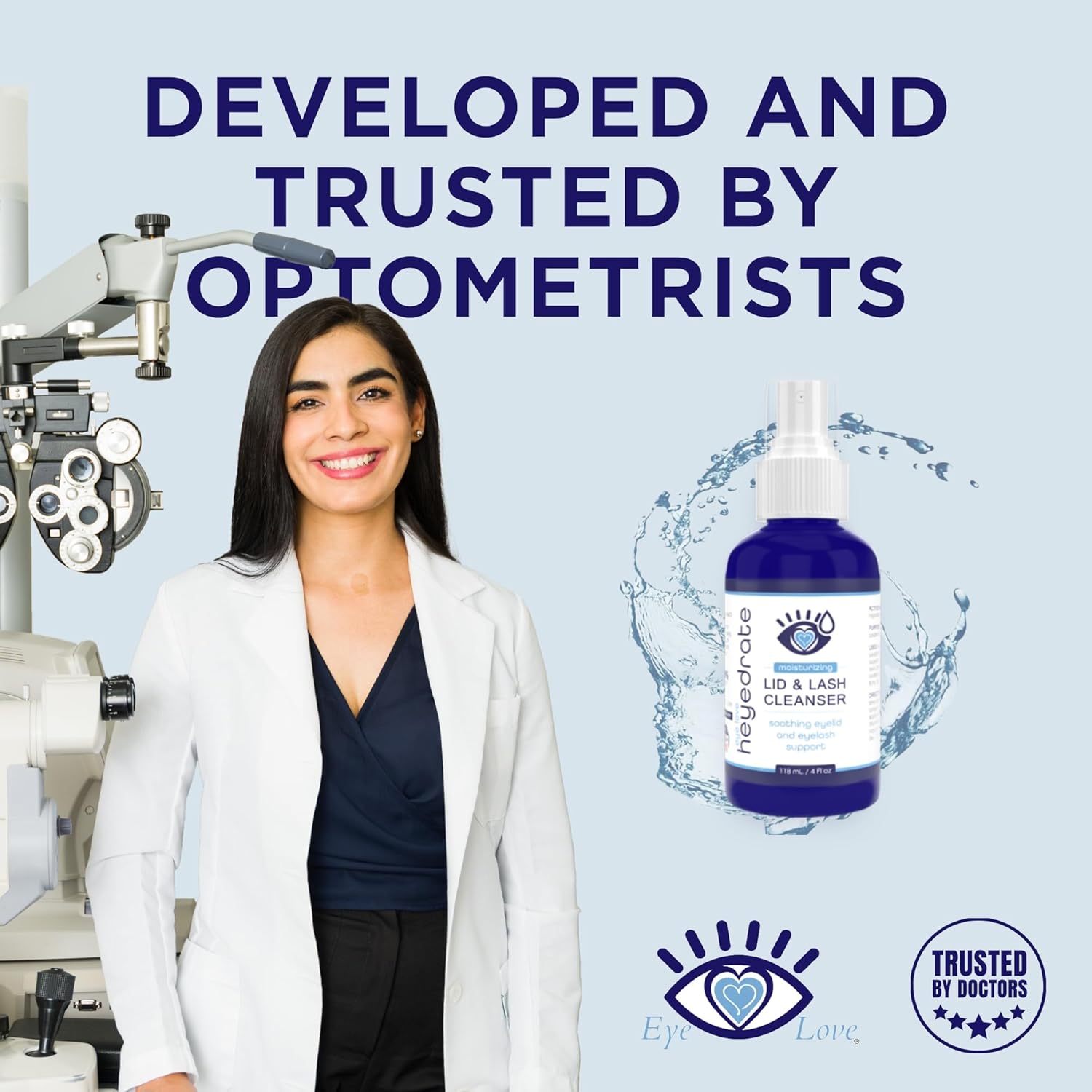 Heyedrate Lid & Lash Cleanser for Stye, Blepharitis, Dry Eyes, Meibomian Gland Dysfunction, Rosacea, and Eye Irritation Relief | Hypochlorous Acid Eyelid Cleanser Spray