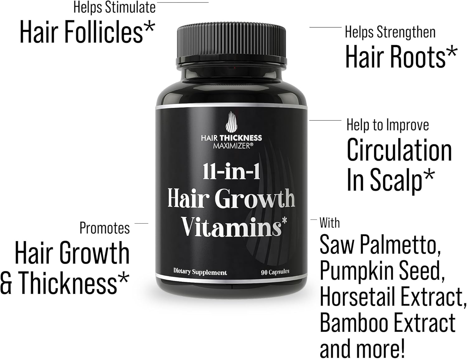 - Ultimate Hair Growth Boost: Our 11-in-1 fuller hair vitamins pack a punch with top hair growth vitamins like Biotin, Pumpkin Seed, Horsetail, Saw Palmetto, Zinc, and Copper. These hair growth vitamins are designed to give you thicker, stronger hair with every dose