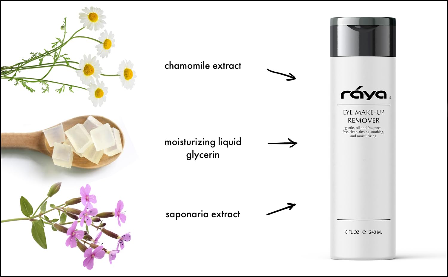 Raya Eye Make-Up Remover 8 oz (105) | Oil-Free, Make-Up Removing Cleansing Fluid | Gently Removes Non-Water-Proof Mascara | Great For Sensitive Skin