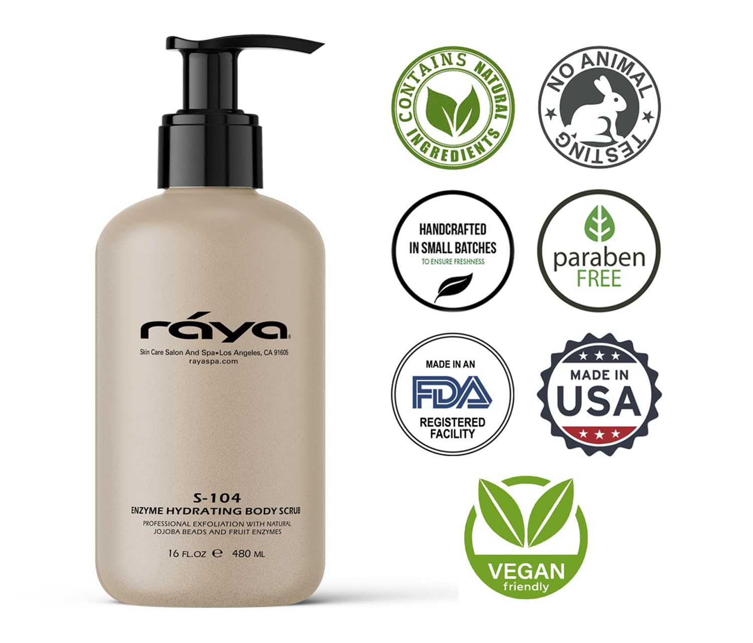 RAYA Enzyme Hydrating Body Scrub 16 oz Orange Vanilla Scent (S-104) | Gentle and Exfoliating Body Scrub | Made with Seaweed, Jojoba Beads, and Fruit Enzymes