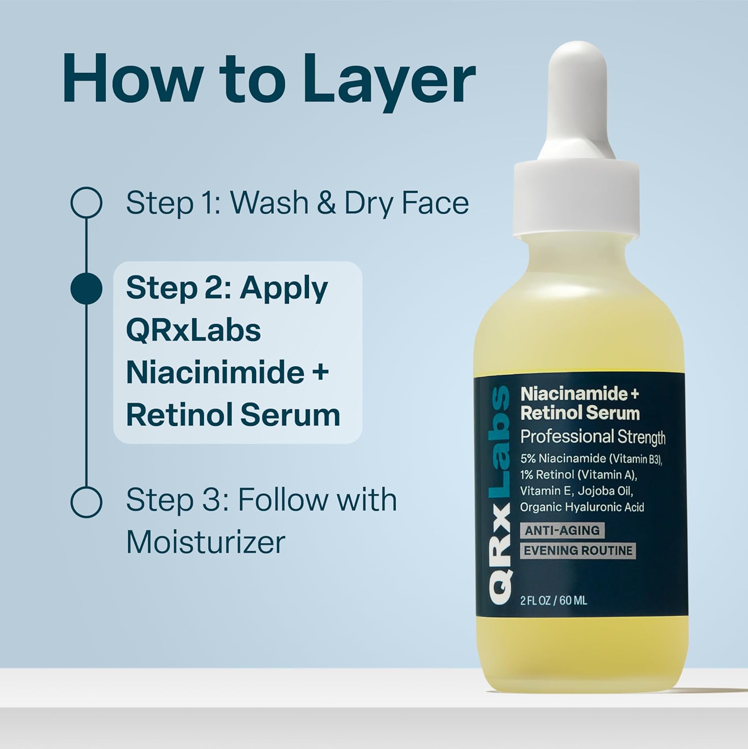 QRxLabs Niacinamide & Retinol Serum - 2 fl Oz - Niacinamide, Retinol & Arbutin - Anti-Aging Pore & Wrinkle Reducer - Fades Blemishes & Tightens Skin