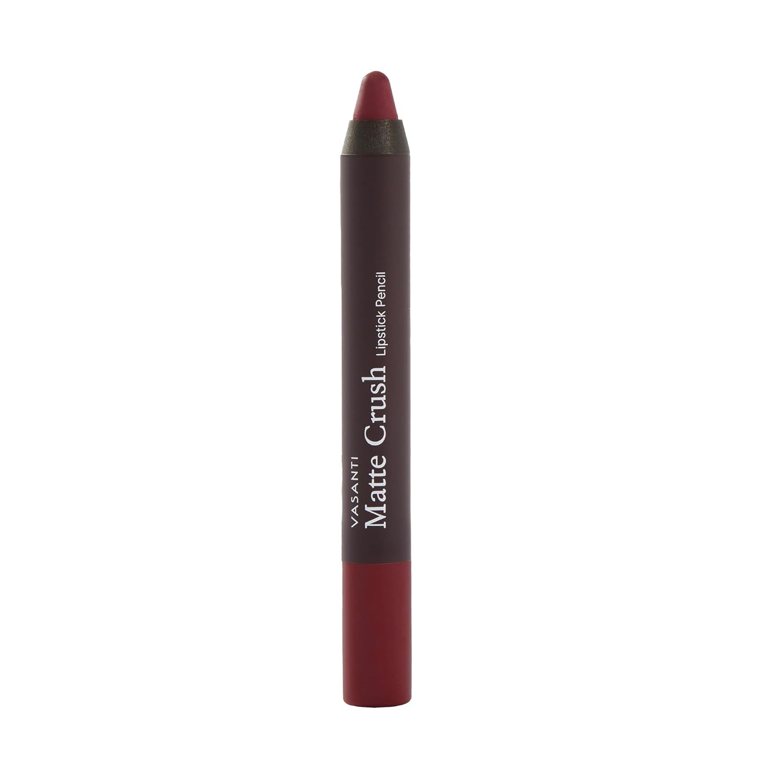 VASANTI Matte Crush Lipstick Pencil – Rosy Pout Medium Pink Brown – Soft, Velvety Matte Finish, Waterproof, Smooth Application – Natural, Vegan, Paraben-Free Lip Color