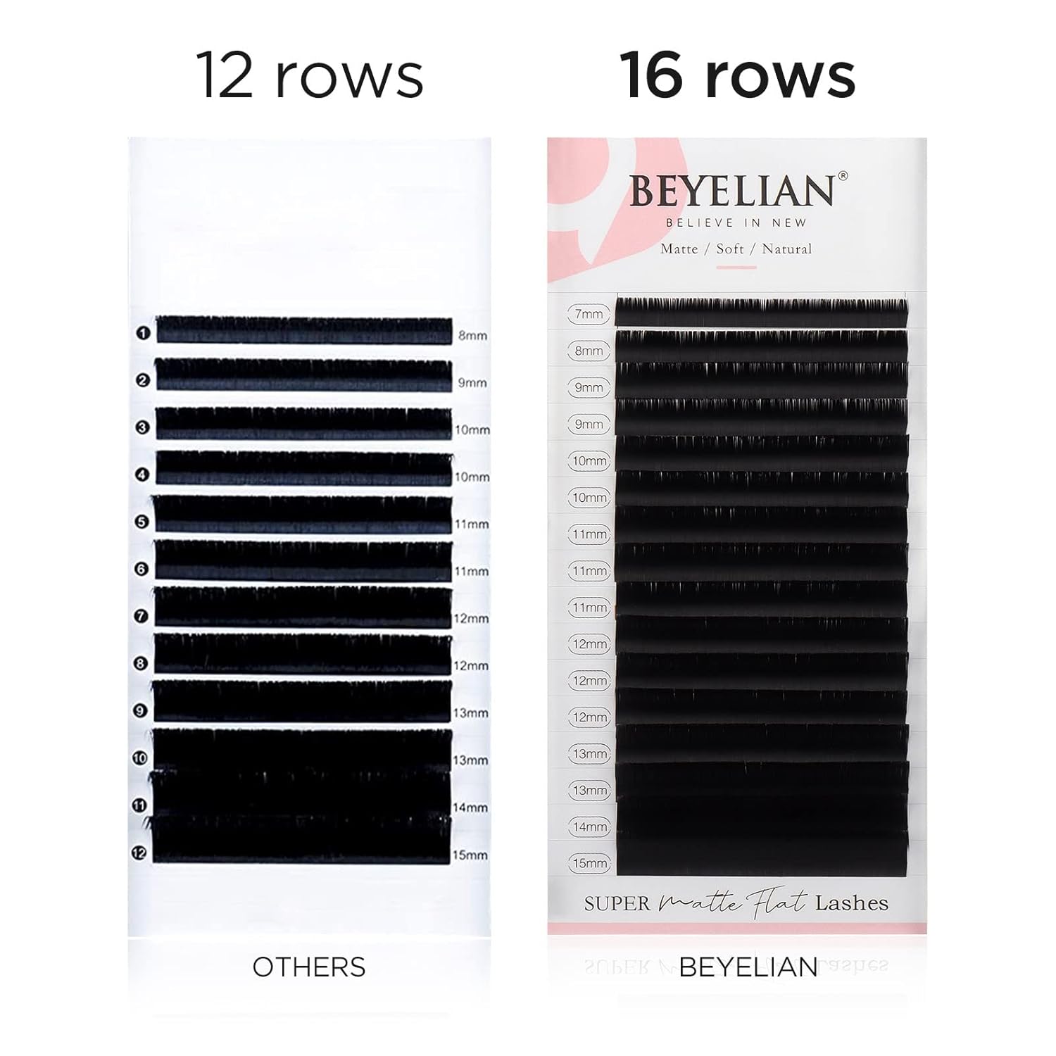 - ITEM SPECIFICS of Ellipse flat eyelash extension: D curl, 0.15mm; 16 rows, approx 4480 lashes per tray, service for 18-22 clients; made with Korea synthetic fiber-environmental protection material; Assorted Lengths: 7mmx1 8mmx1 9mmx2 10mmx2 11mmx3 12mmx3 13mmx2 14mmx1 15mmx1