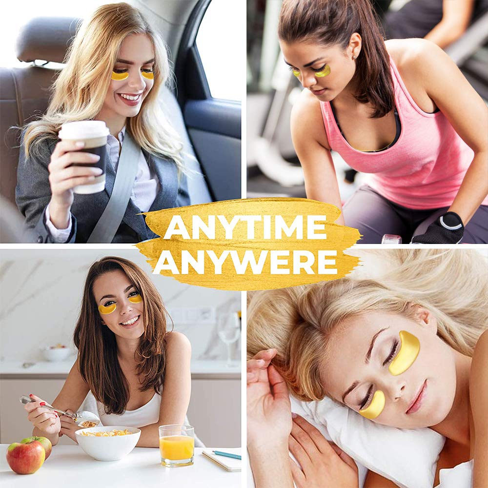Vandarllin 24K Gold Powder Gel Collagen Eye Masks Sheet Patch, Anti Aging, for Bags,Dark Circles and Puffiness,Anti Wrinkle,Moisturising,Hydrating for Blackheads (20Pairs)