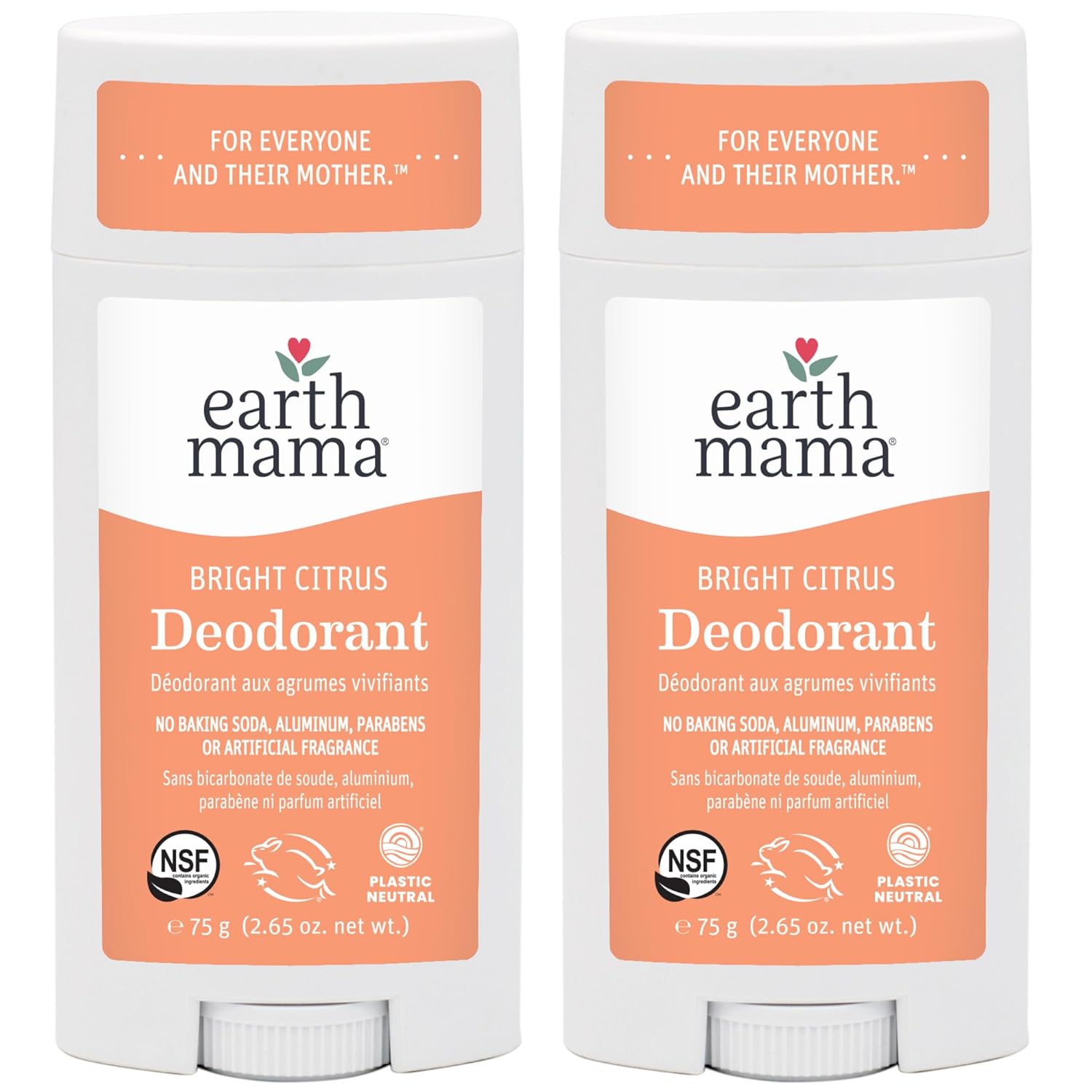 Earth Mama Bright Citrus Deodorant | Safe for Sensitive Skin, Pregnancy and Breastfeeding, Contains Organic Grapefruit and Calendula, No Baking Soda or Aluminum, 2.65-Ounce (2-Pack)