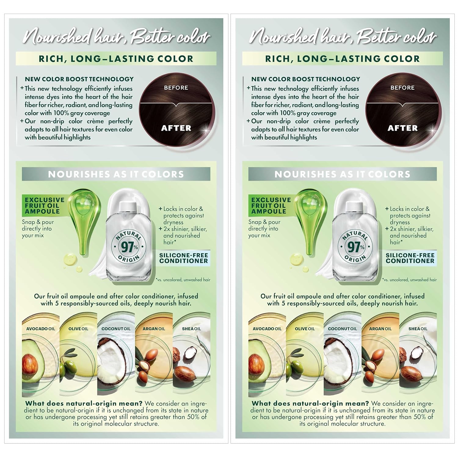 - Hair Dye Kit: The only hair color with a separate fruit oil ampoule that you snap & pour directly into the mix; Follow hair dye with our after color hair conditioner, infused with a blend of 5 fruit oils: avocado, olive, shea, argan & coconut oil