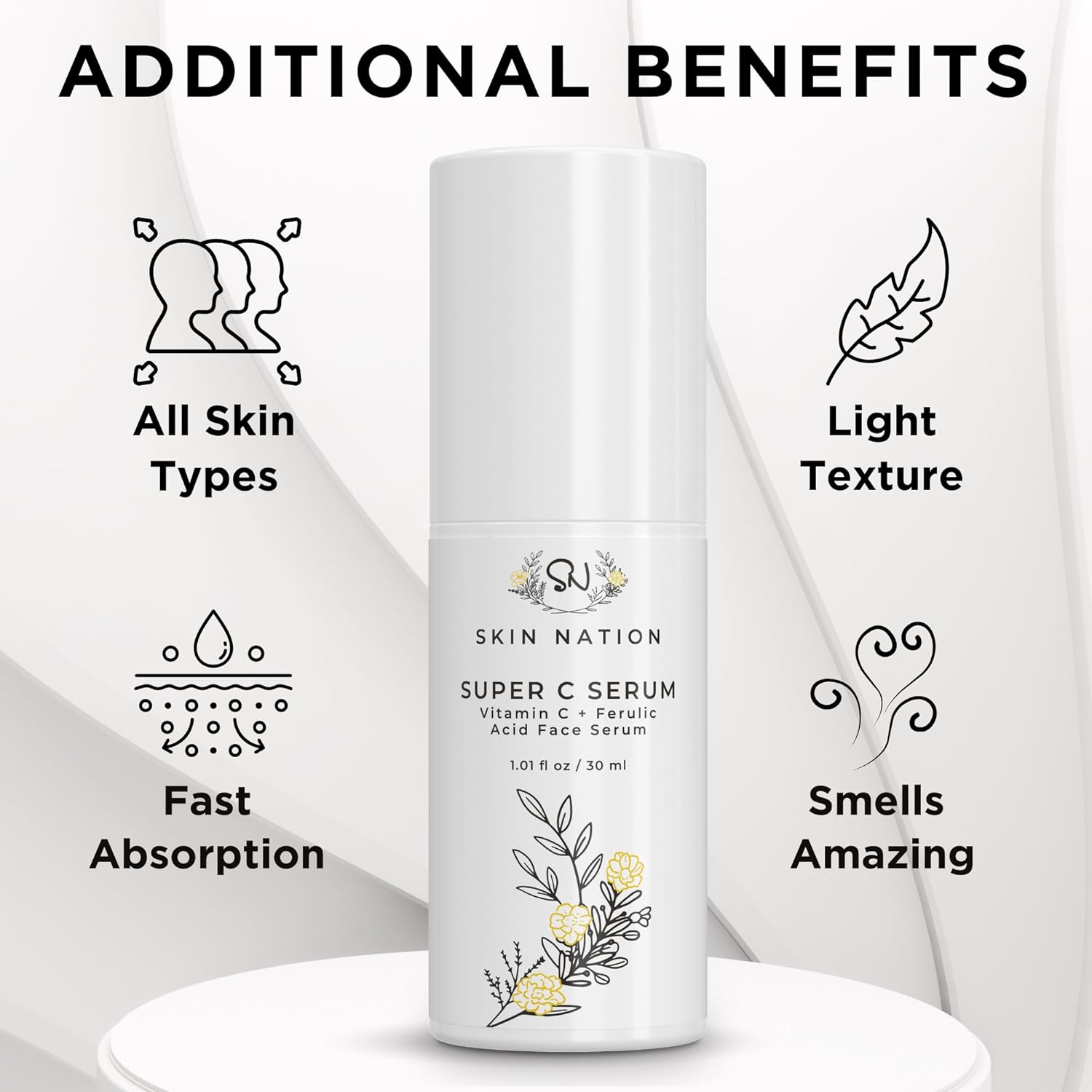 Skin Nation Super Hydrating Vitamin C Face Serum with Ferulic Acid, Aloe Vera, Rosehip Oil, Can Help Smooth Skin Texture and Supports Firmer Skin, for Dry and Sensitive Skin