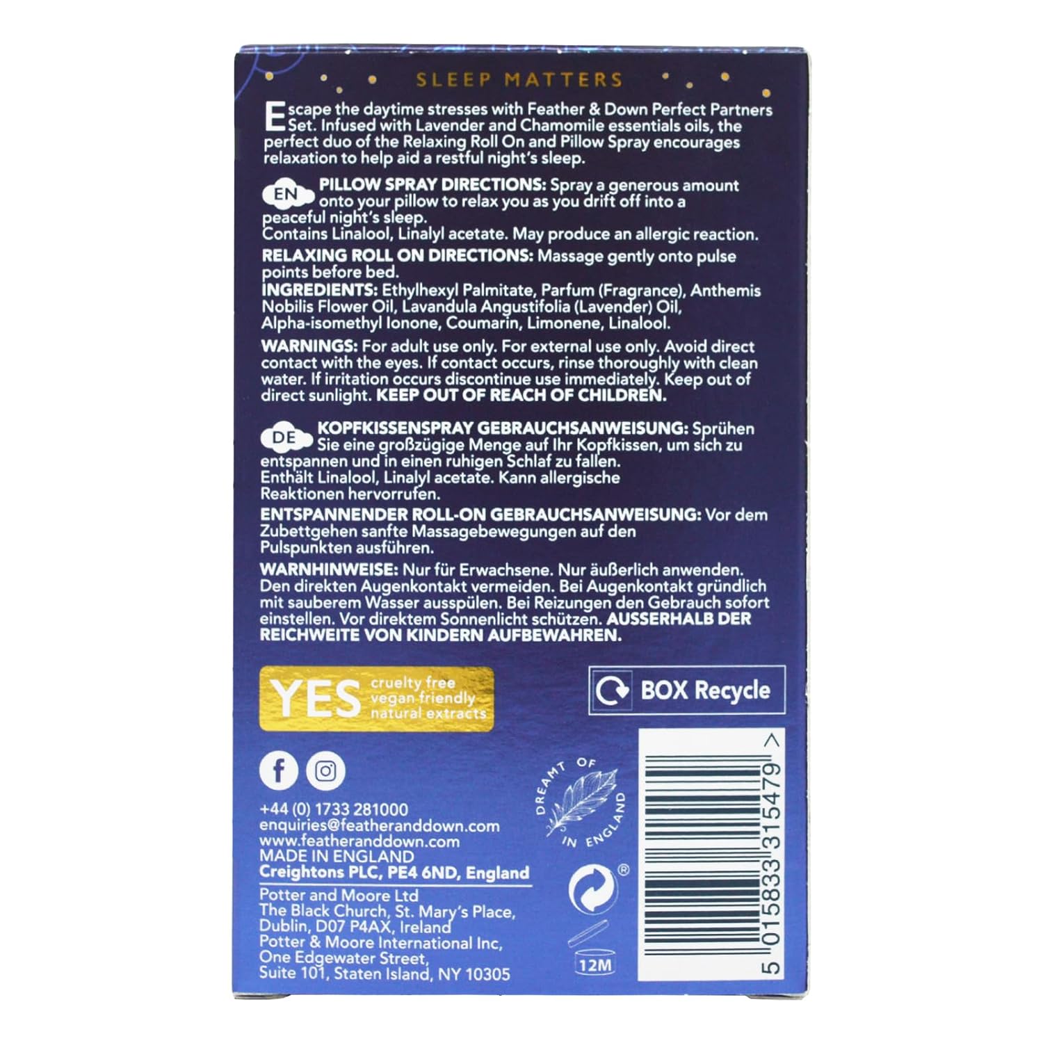 Feather & Down Sweet Dream Perfect Partners Gift Set: 50ml Pillow Spray & 10ml Roll-On, With Calming Lavender & Chamomile Essential Oils, Vegan & Cruelty Free