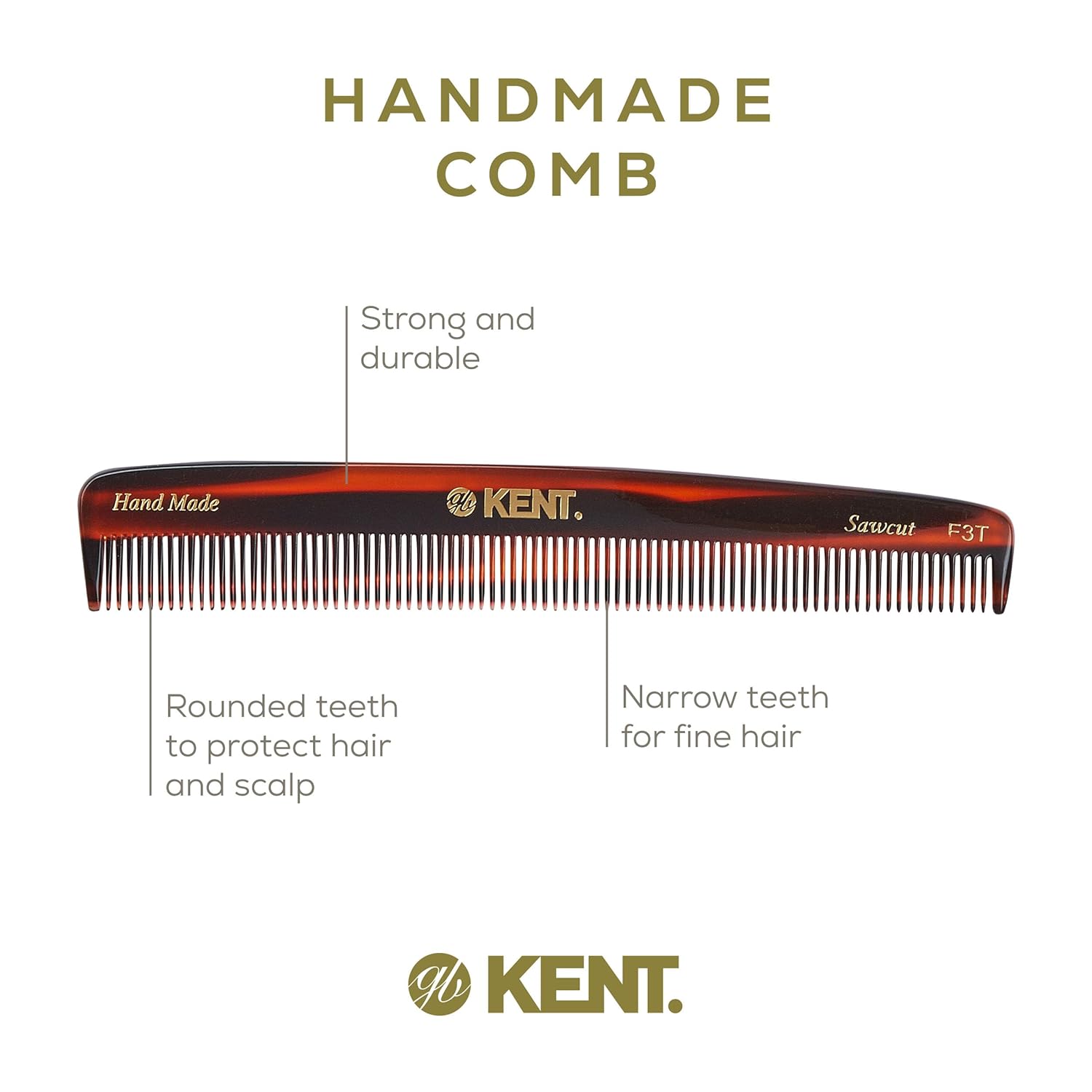 Kent F3T Fine Tooth Comb for Hair Parting, Handmade Combs for Men and Straightening Comb for Women, Dandruff Remover Kent Mens Combs for Fine Hair