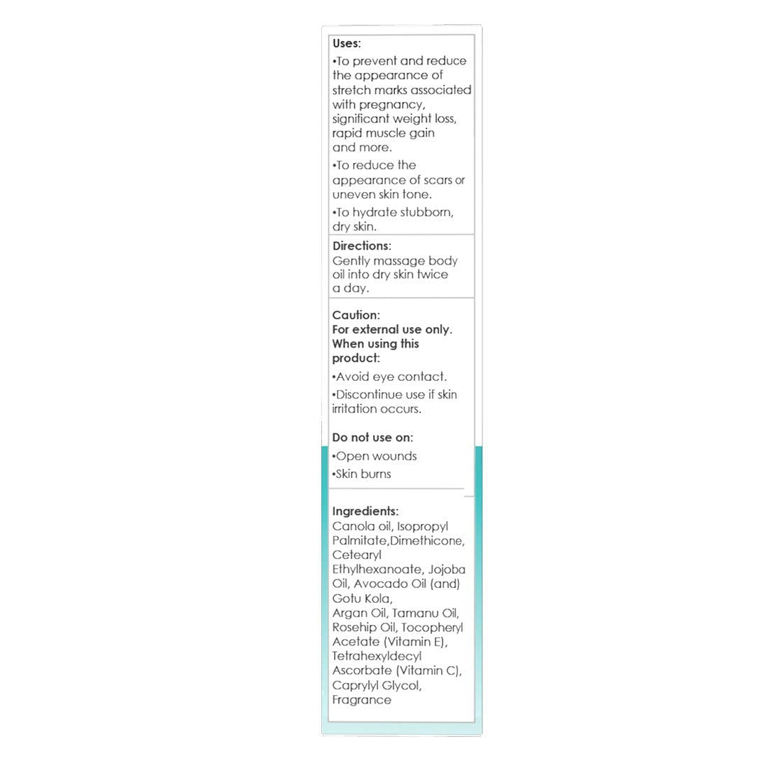 ReTone® Body Oil: Stretch Mark Prevention -Non-greasy finish - Infused with Gotu Kola - No mess dispenser - Tamanu oil + Argan Oil + Rosehip Oil + Jojoba Oil + Vitamin E C (dry skin, uneven skin tone)