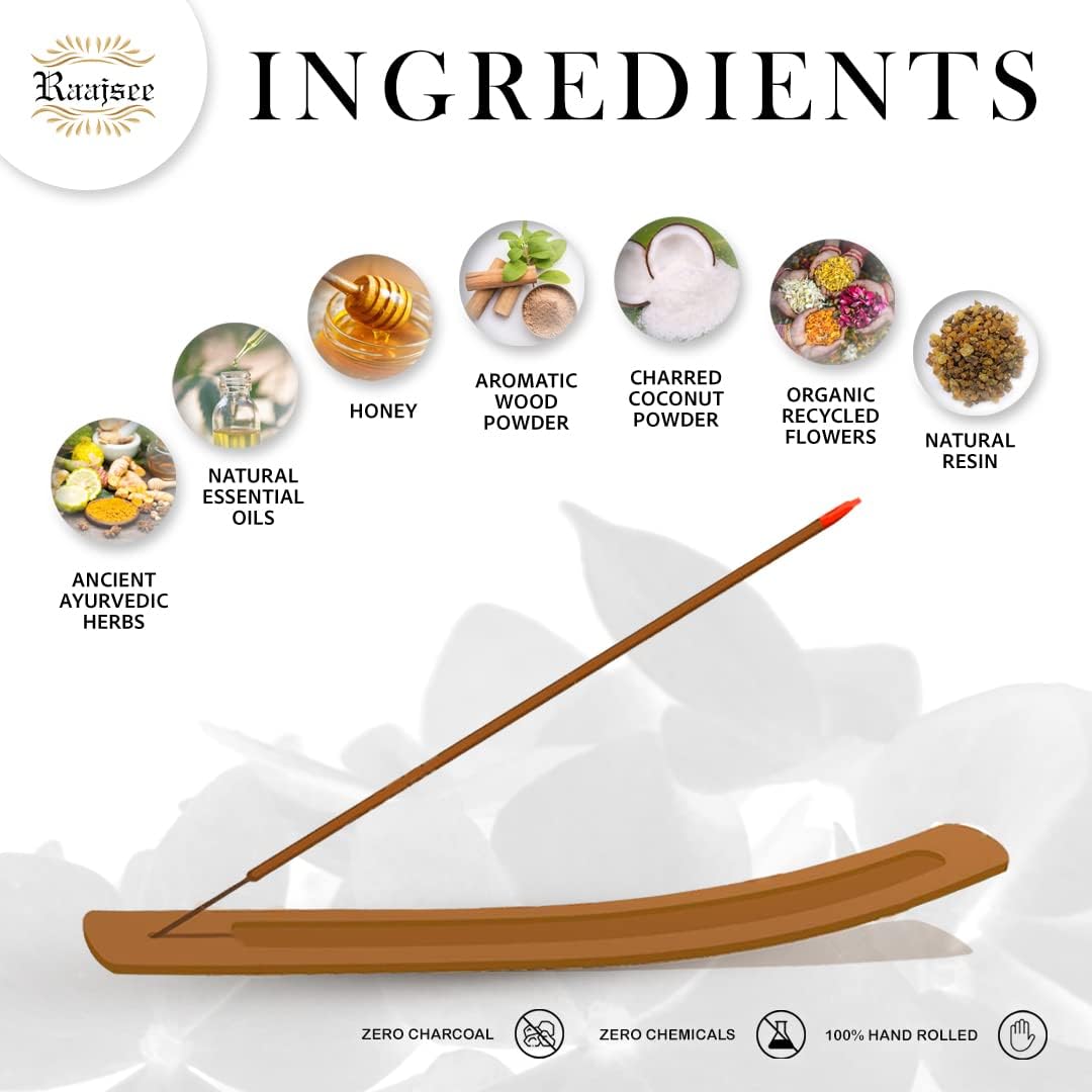 - PRODUCTION METHOD - Hand rolled in India with Indian traditional techniques which lasts longer.Raajsee Incense utilizes fair trade labor and environmentally responsible production methods to give you the best incense around .We lets you be assured that it is free of nasty chemicals like charcoal and other accelerants