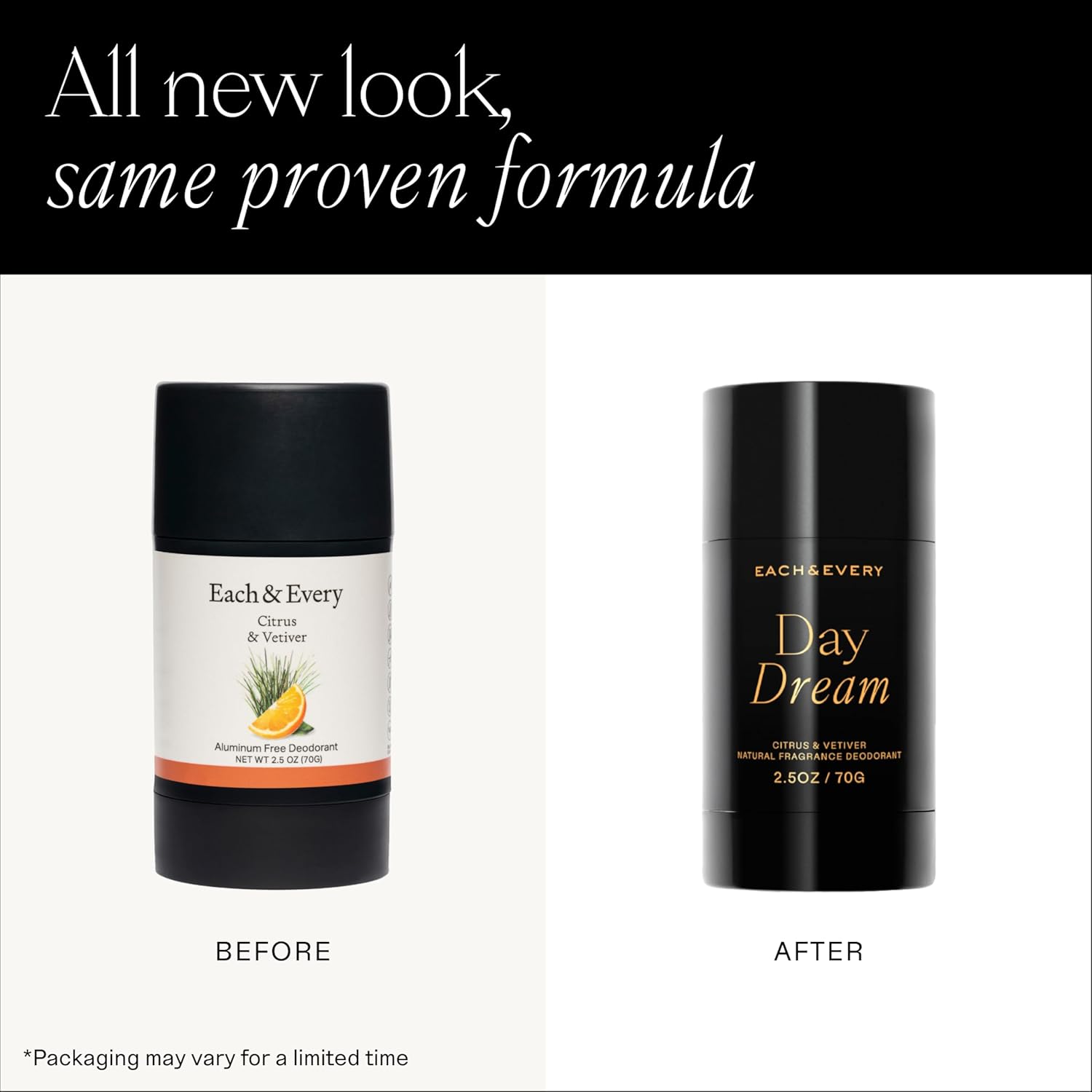 Each & Every Aluminum Free Deodorant for Women & Men - All Natural Deodorant for Sensitive Skin, EWG Verified - Clean, Baking Soda-Free, Plant-Based Fragrance, Citrus & Vetiver, 2.5oz