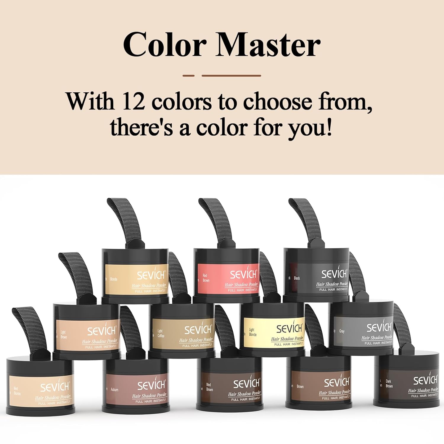 SEVICH Hairline Shadow Powder - Quick Cover for Grey Roots, Eyebrows & Beards, Touch Up Thinning Hair, Windproof & Sweatproof, Light Coffee