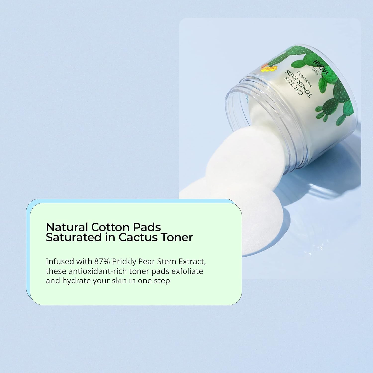- HYDRATING & EXFOLIATING: Instead of using Purified Water we went a step further and used Cactus Extract as our ingredient. This allowed us to contain over 87% of Cactus Extract in our Cactus Toner Pads. With special exfoliation/healing ingredients such as Witch Hazel Extract and Cica that effectively wipe off waste to start your skincare routine.
