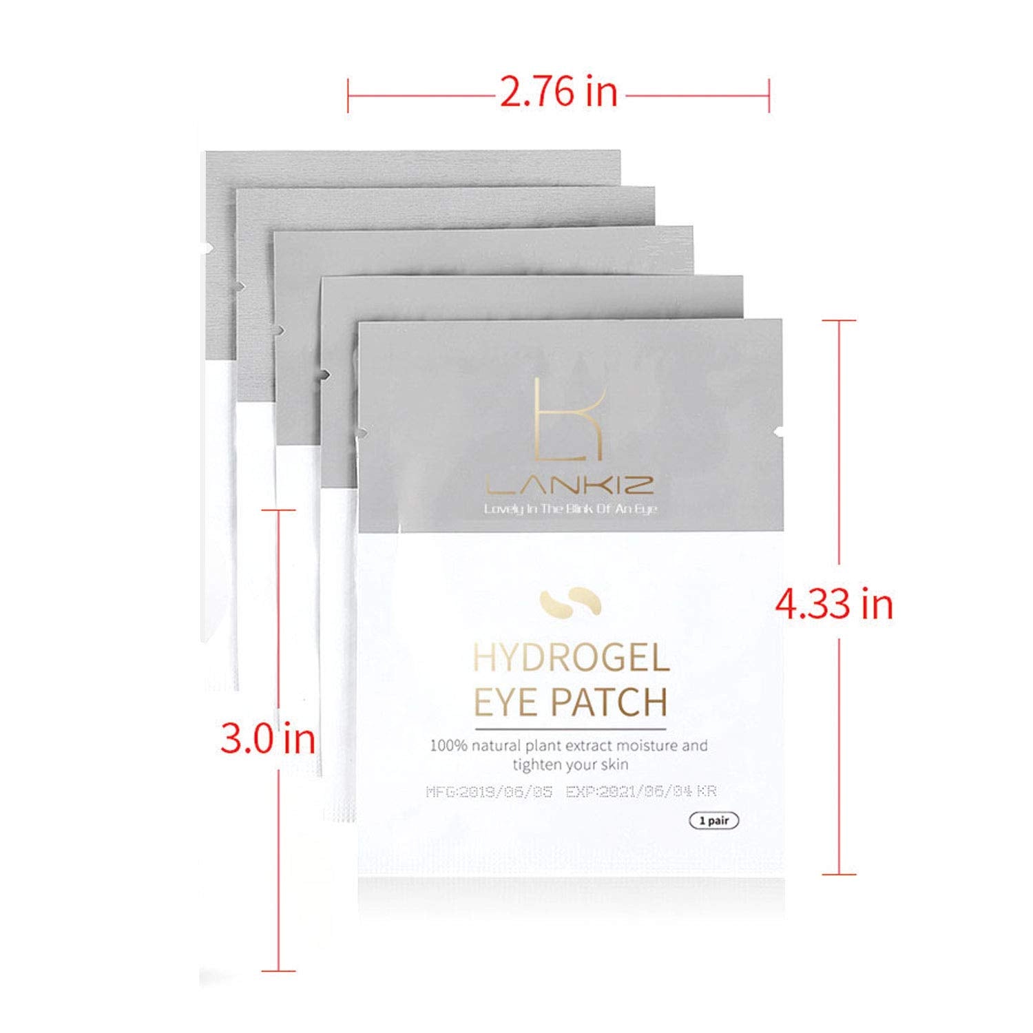 LANKIZ 100 Pairs Under Eye Gel Pads for Lash Extensions, 100% Natural Plant Extract, Collagen Hydrogel, Lint-Free, Moisturizing, Reduces Dark Circles and Eye Puffiness