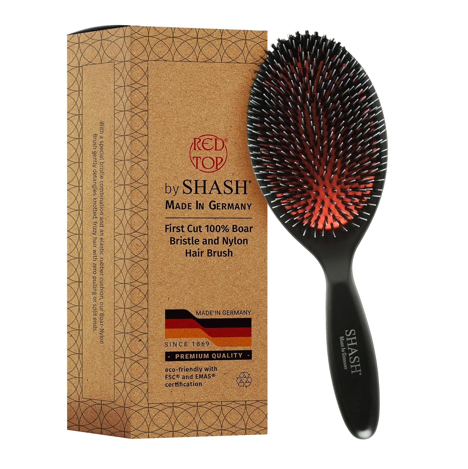 Since 1869 Hand Made In Germany - Nylon and 100% First Cut Boar Bristle Brush Suitable For Normal to Thick Hair - Gently Detangles, No Pulling or Split Ends - Softens Improves Texture, (Large)
