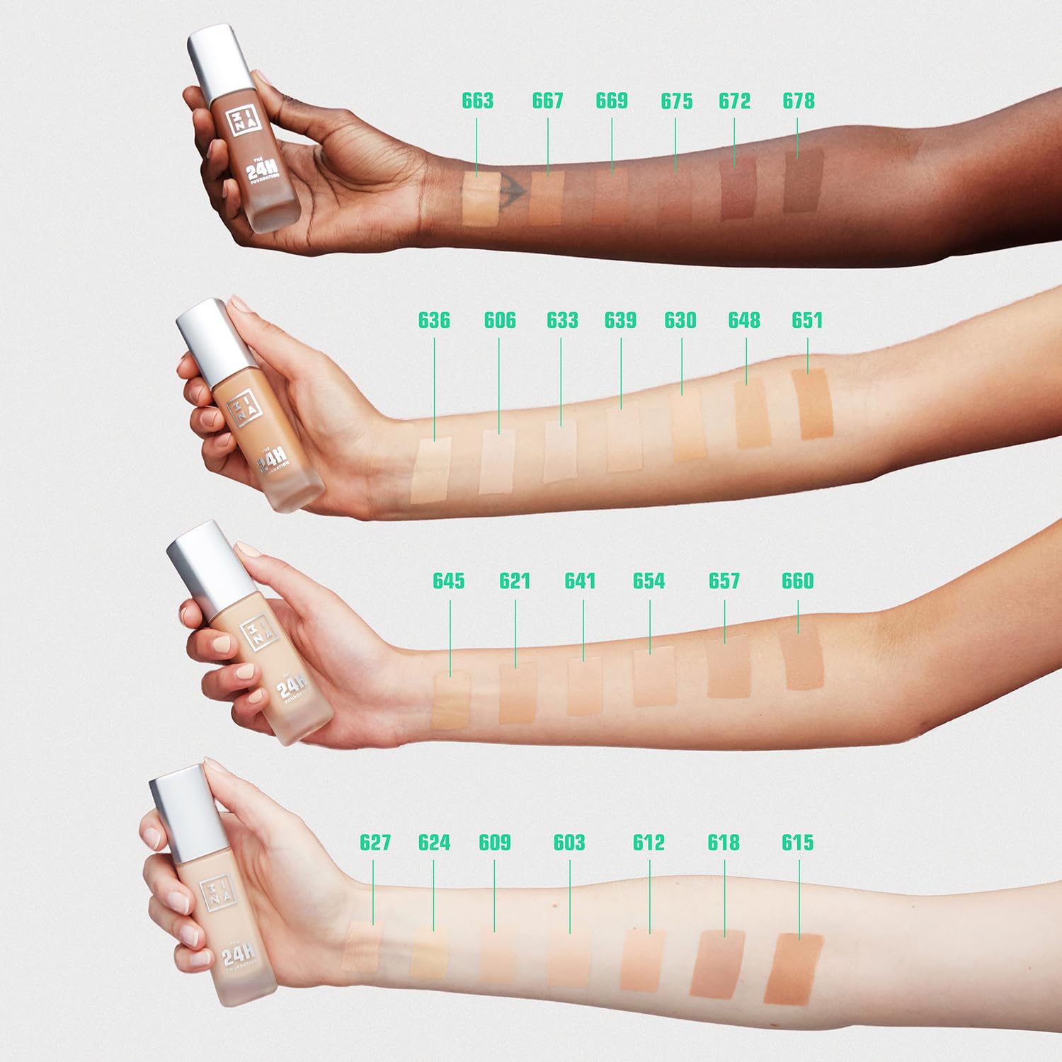 3INA The 24H Foundation 627-24H Long-Wearing Formula - Medium To High Buildable Coverage - Smooth Matte Finish - Expanded Shade Selection - Waterproof, Cruelty Free, Vegan Makeup - 1.01 Oz