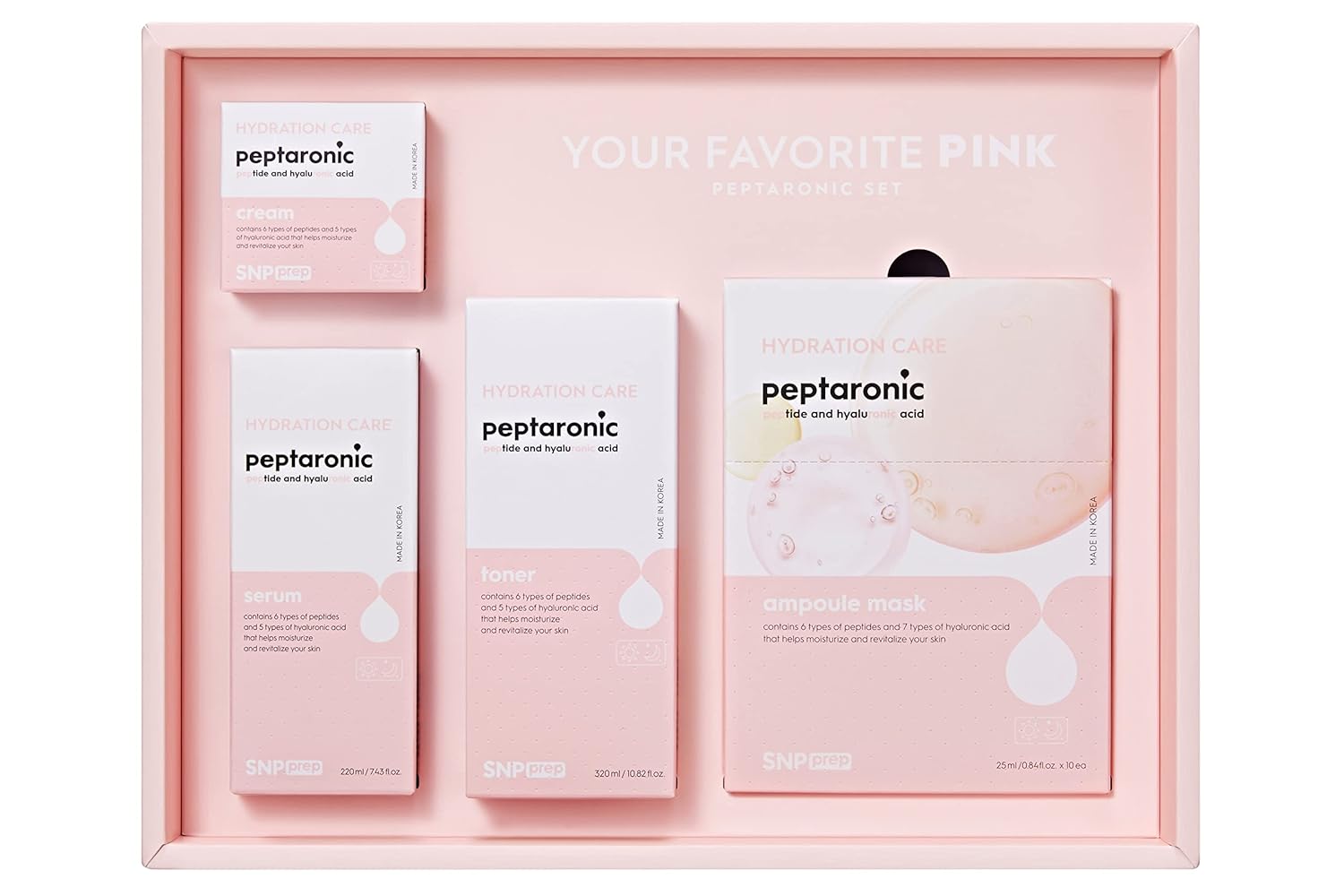 SNP PREP Skincare Set | 4-in-1 Korean Skin Care Set | Peptaronic Complete Skin Care Set | Includes Facial Toner, Cream, Face Serum, and Ampoule Sheet Face Masks | Skin Care Gift Set | 10 Sheets