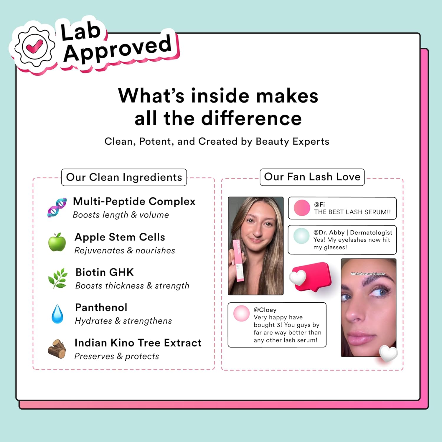 - The All-Natural Lash Booster — We’ve combined the best of nature with the best of science to bring you the ultimate eyelash enhancing serum. Our advanced formula thickens, lengthens, and strengthens lashes while deeply nourishing them for a healthier, more voluminous look.