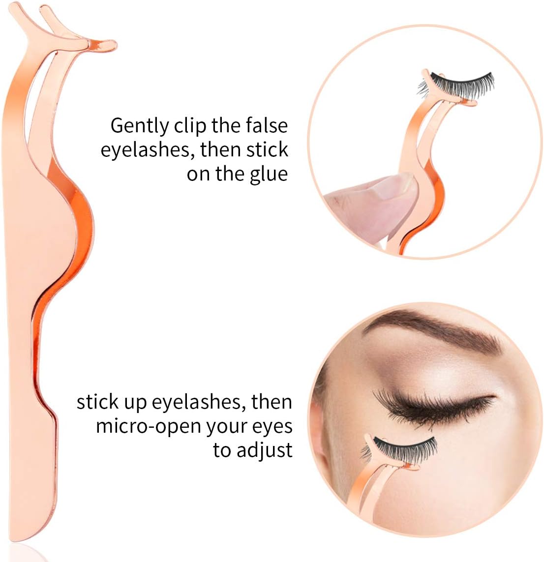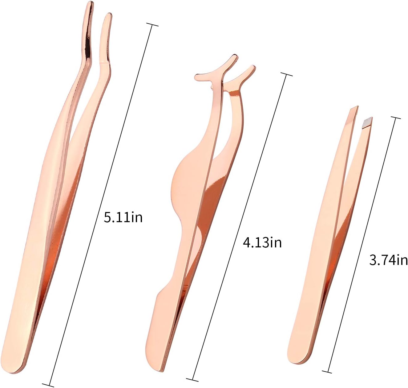 Arroyner 3Pcs Eyelashes Tool Fake Lash Applicator Lash Tools Fake Eyelashes Scissors (Rose Golden)