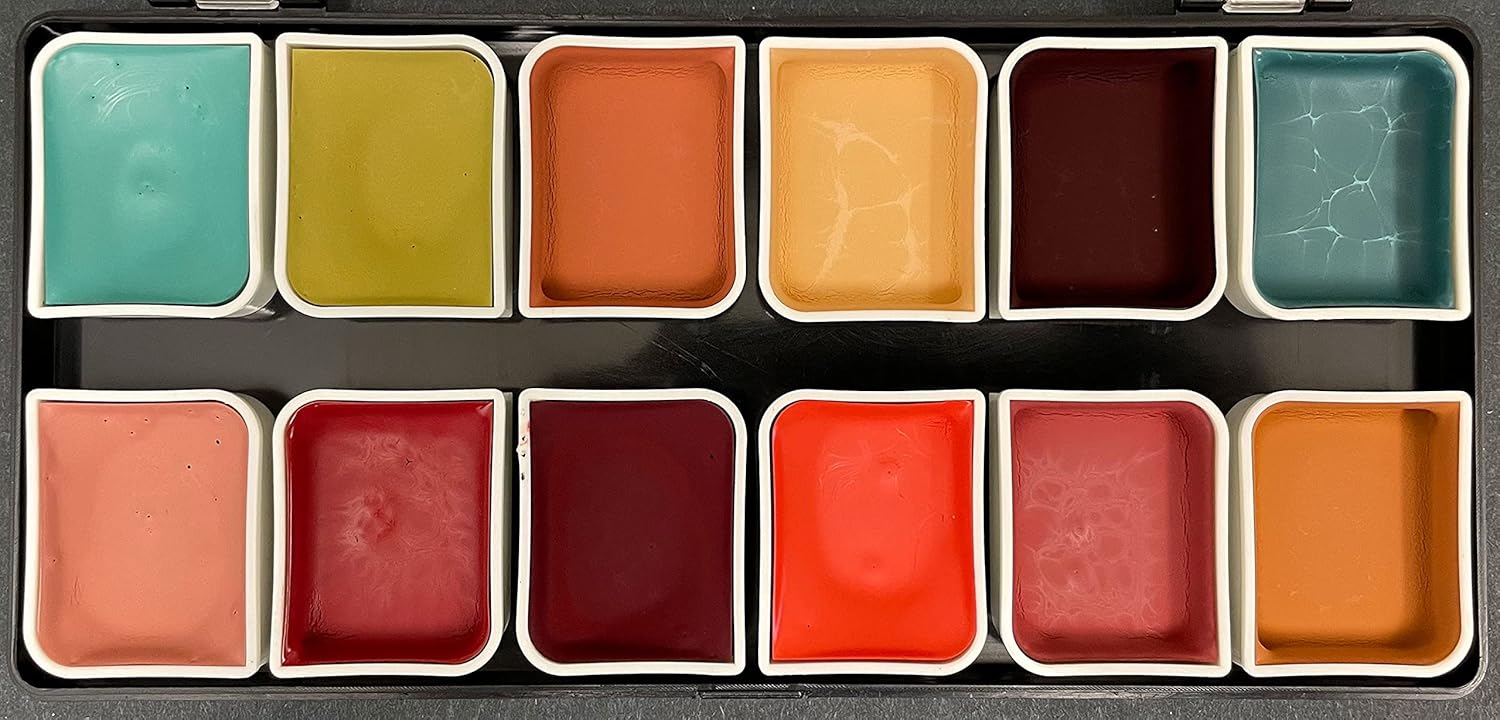 12-Color Complexion Alcohol-Activated Palette, Professional Quick Drying Waterproof SFX Makeup, Tattoo Cover