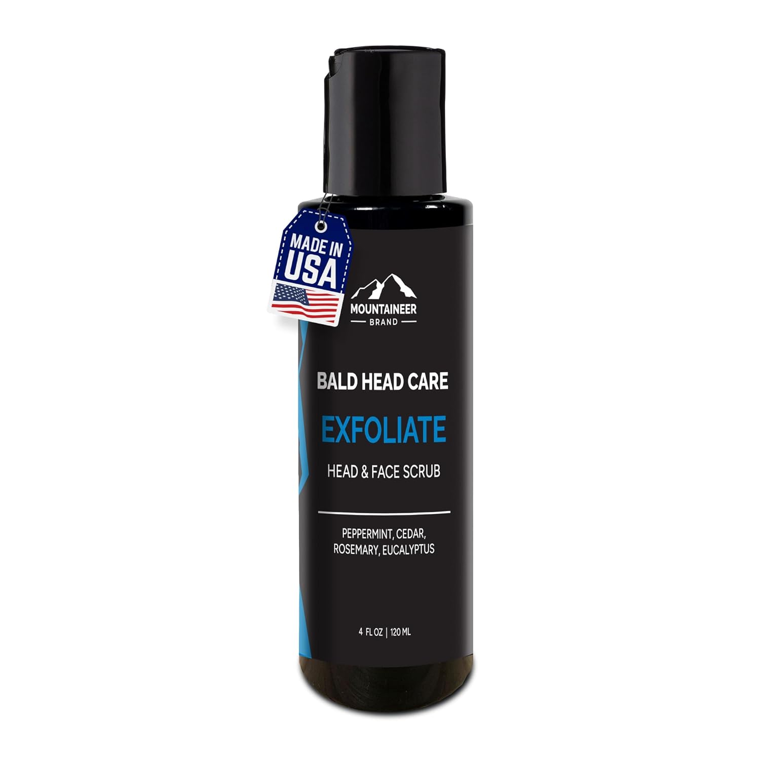Mountaineer Brand Bald Head Care For Men | Exfoliate Head/Face Scrub | All Natural Exfoliating Scalp | Daily Grooming Head and Face Care Wash for Sensitive Skin | Refreshing Natural Scent 4oz