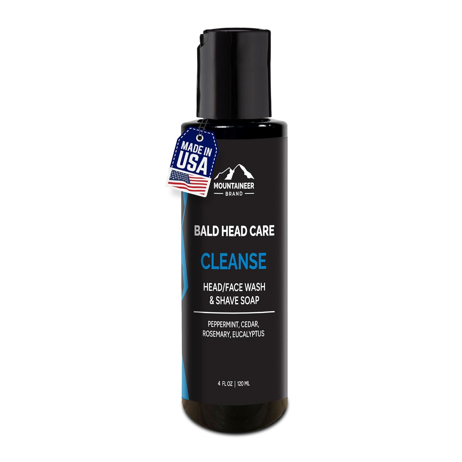 Mountaineer Brand Bald Head Shampoo for Men | All Natural Moisturizing/Hydrating Shaving Soap and Face Cleanser | For Daily Head/Scalp Care and Wash | Cleanse | Refreshing Natural Scent 4oz