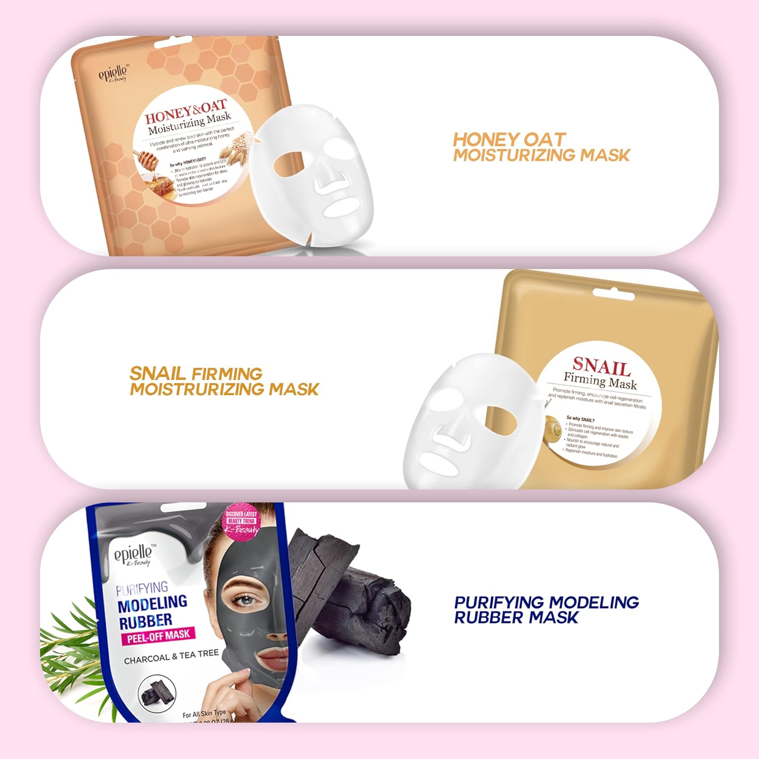 Epielle All In One Kit, cleansing, facial sheet mask, peel off, Fun facial mask Kit, Moisturizing Facial Skincare for Sensitive Skin & Acne | Spa Day Party, Mothers Day Gifts