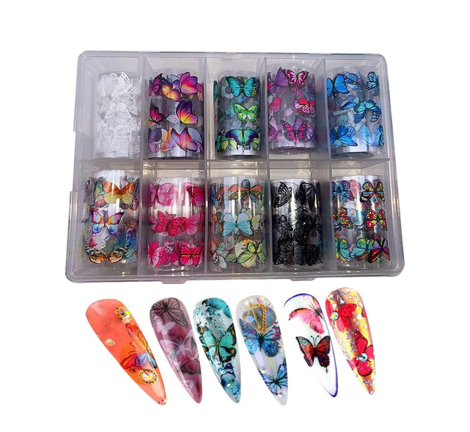 - Mixed 10 rolls butterfly and flower nail foil transfer stickers, fashionable and beautiful patterns for your nail fashion art