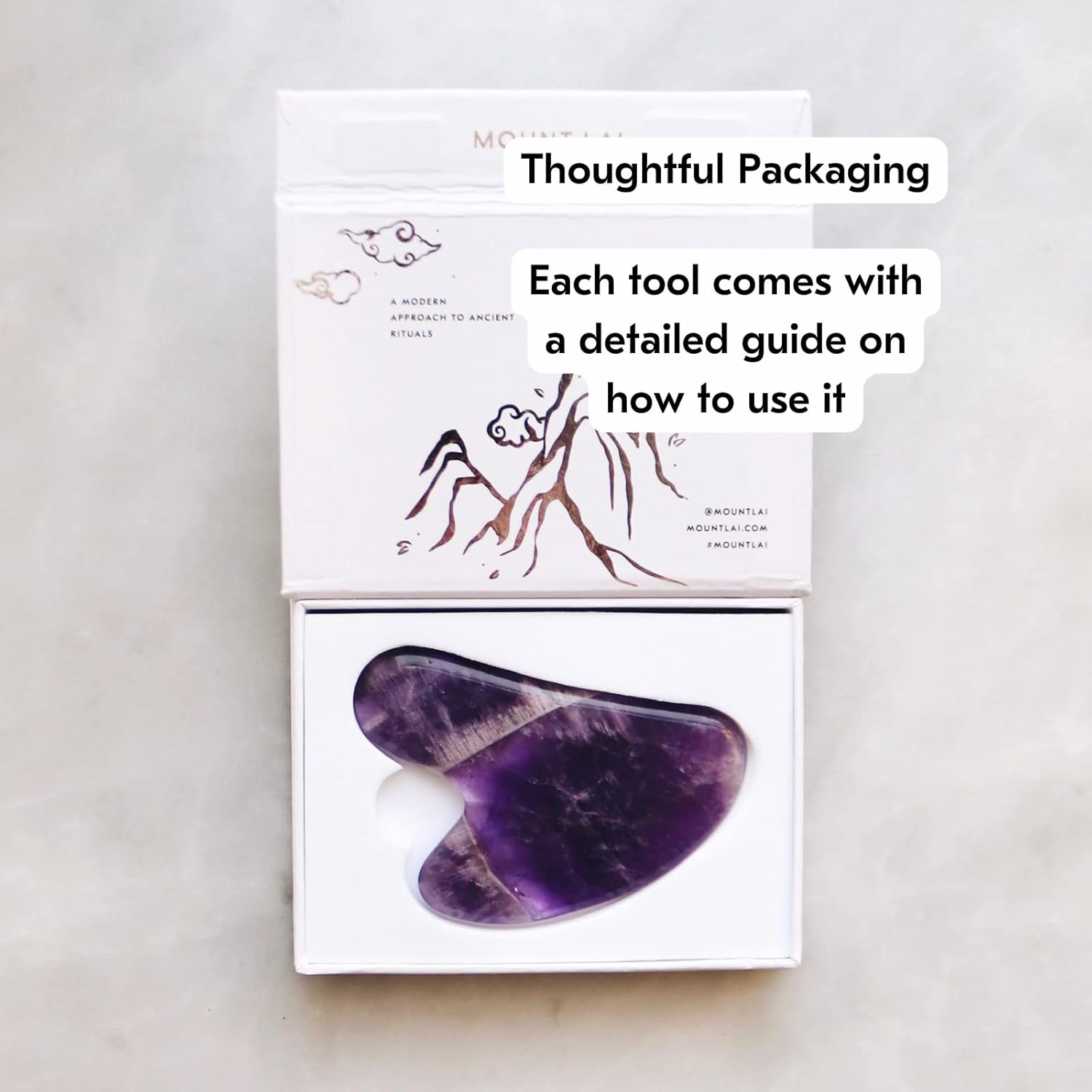- THE STONE OF INNER CLARITY: Rooted in Traditional Chinese Medicine for thousands of years, Amethyst promotes mental clarity and wisdom that radiates outward as confident beauty. Our 100% genuine amethyst stone gua sha tool naturally supports stress relief and clear thinking, helping you achieve the inner calm that shows as outer radiance and self-assured confidence.