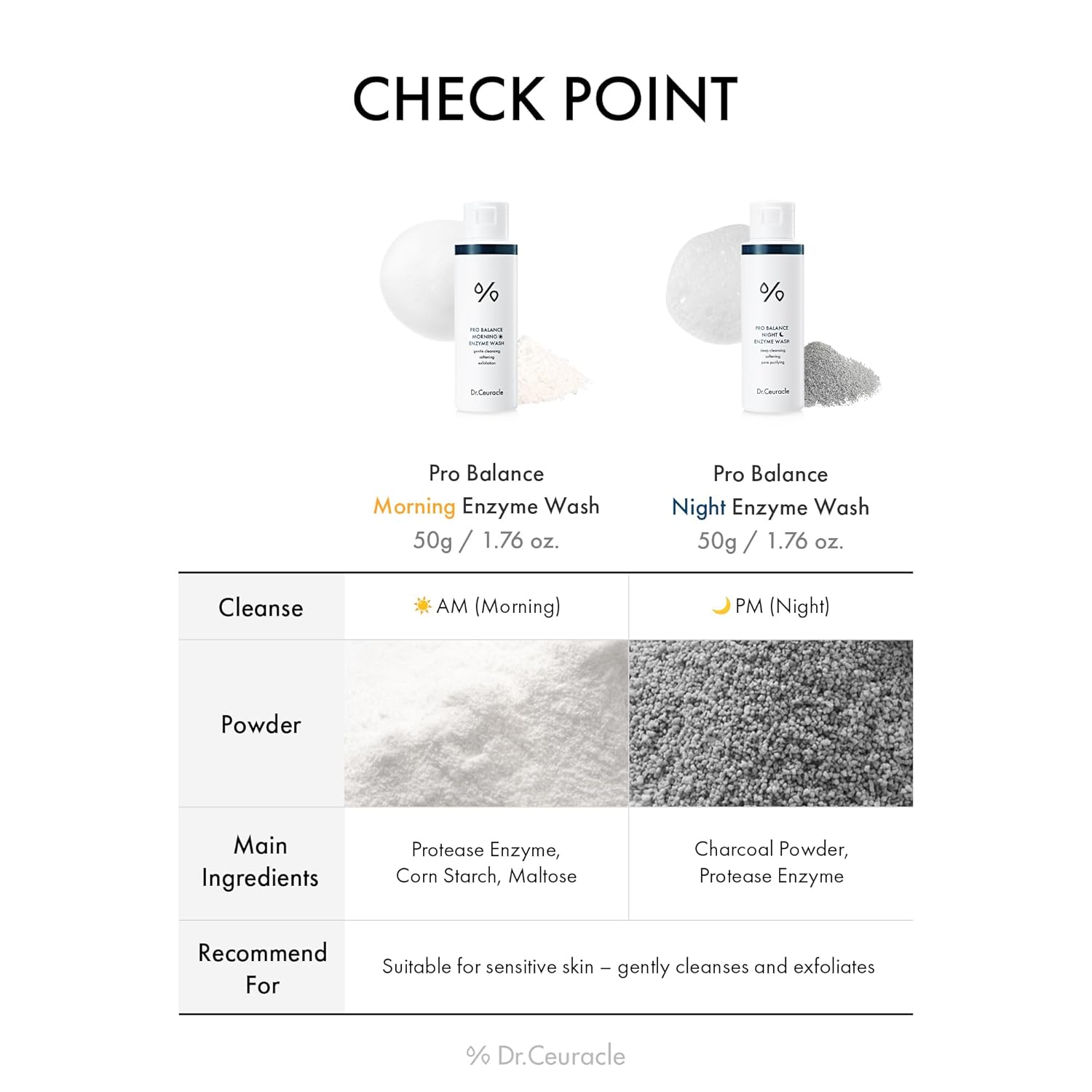 Dr.Ceuracle Pro Balance Enzyme Powder Face Wash - Korean Day and Night Natural Enzyme Powder Face Wash for Deep Pore Cleansing, Sebum Removing, pH Skin Balancing Care (Morning Wash)