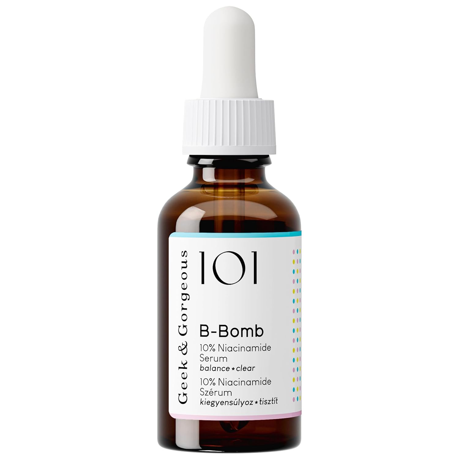 Geek & Gorgeous - B-Bomb - 10% Niacinamide Serum, Zinc PCA & Sarcosine, helps enlarged pores, oiliness and blemishes, combination skin, 1 oz