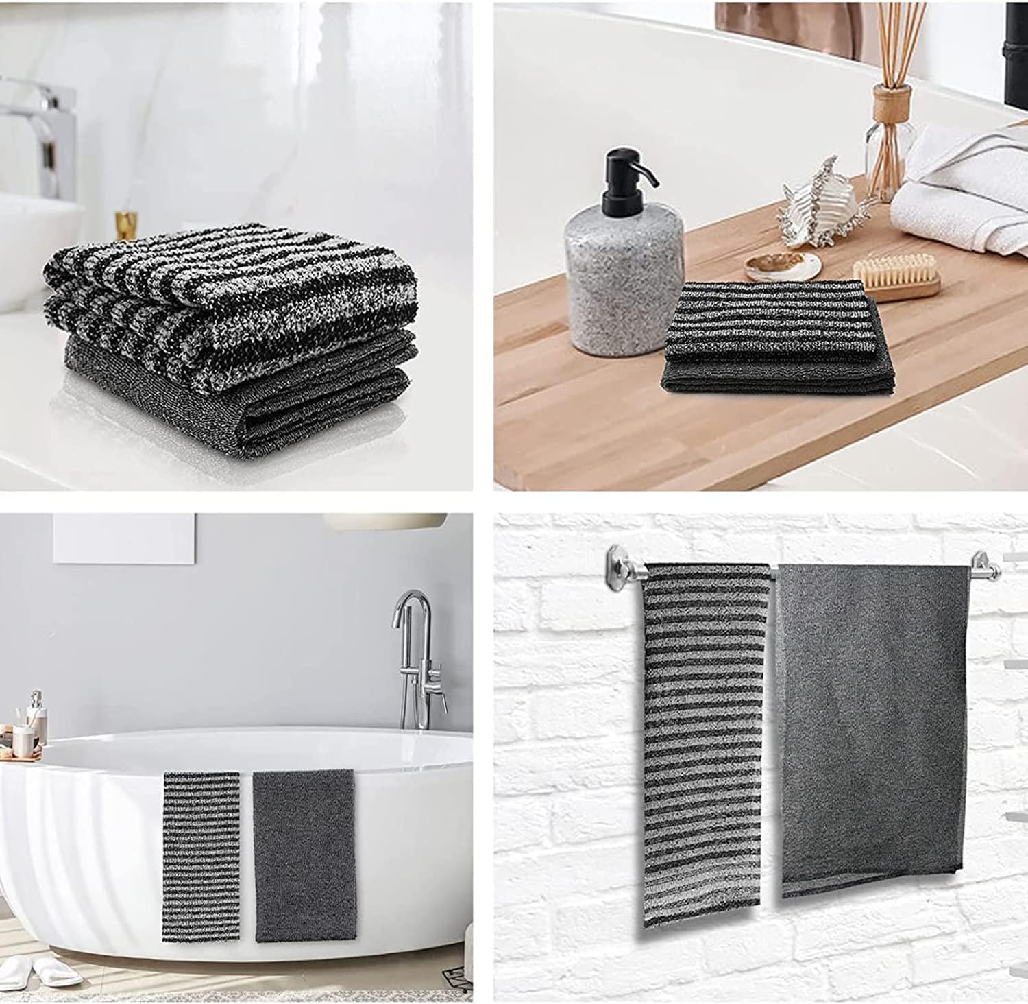 Yiclick Exfoliating Body Scrubber, Back Scrubber for Shower Bath, Japanese Scrub Wash Cloth, Exfoliating Washcloth Towel for Men Women, Body Exfoliator Loofah Luffa Sponge Net Rag Back Washer (Black)