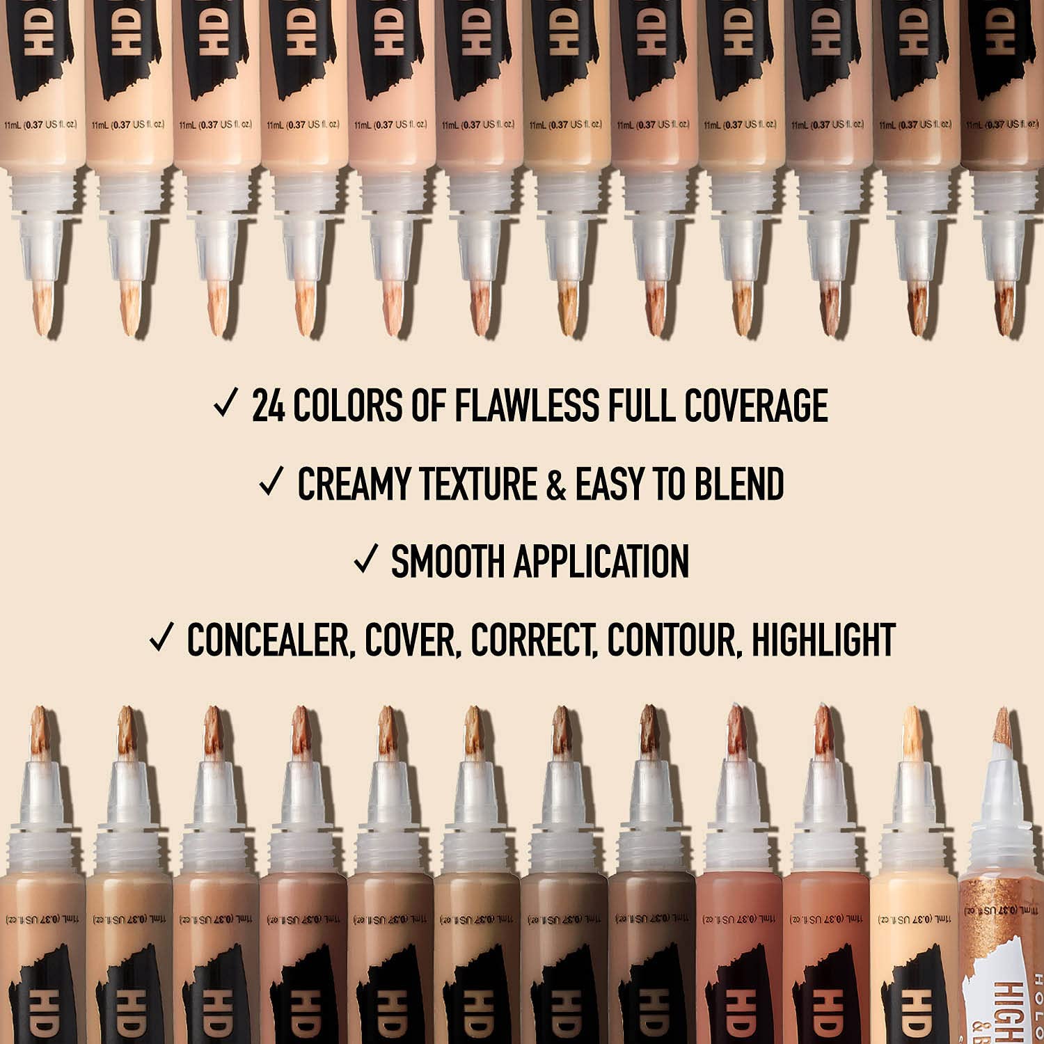 - This concealer also comes in twenty four different colors and shades, allowing you to match it to your style with unprecedented accuracy.