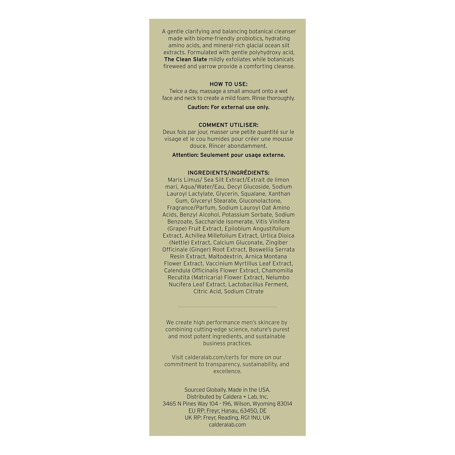Caldera + Lab The Clean Slate | Men's Organic Foaming Facial Cleanser for Dry, Sensitive, & Normal Skin – Vegan, Natural & Antioxidant Packed Exfoliating Face Wash