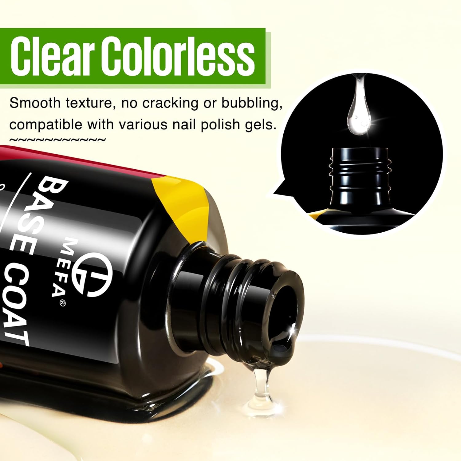 - MEFA Base Coat: Protect your natural nails, increases adhesion between nails and gel color layers and helps the color prevent peeling off. (It is normal for a base coat and color gel to remain a little sticky after curing.)
