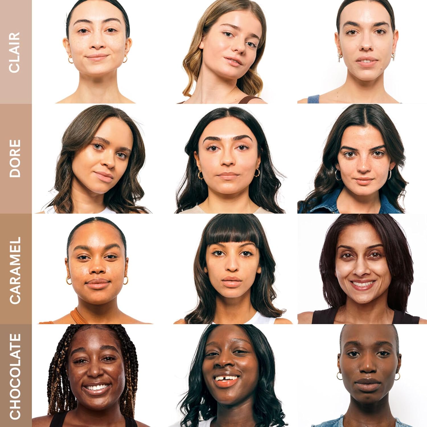 - Erborian CC Water Doré: The perfect combination of weightless skincare with sheer tinted coverage, CC Water makes your skin look fresh and hydrated with a smooth finish. Your skin tone will look more sun-kissed and illuminated, with no oily finish. According to an efficacy test on 10-12 volunteers, the skin will remain hydrated up to 24 hours after application. Doré is the best shade for medium to tan skin tones. 1.3 oz.