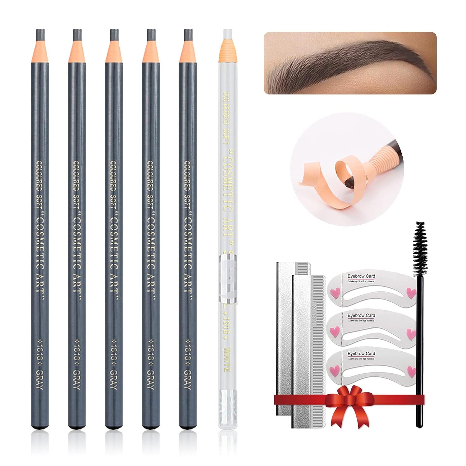 Waterproof Eye-Brows Pen-cil Set, Pull Cord Peel-off Eyebrow Pencil Microblading Eyebrow Pen Supplies Kit, White Eye-Liner Pencil and Eyebrows Tool Tattoo Makeup For Marking (5+1 Gray)