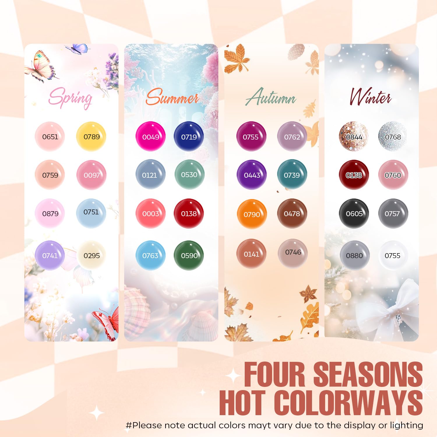 - 32 Colors Classic Set:The gel polish set has rich color intensity, covers all shades needed in the nail art process, from classic black, white, and red to various tones of pink, green, purple, and blue