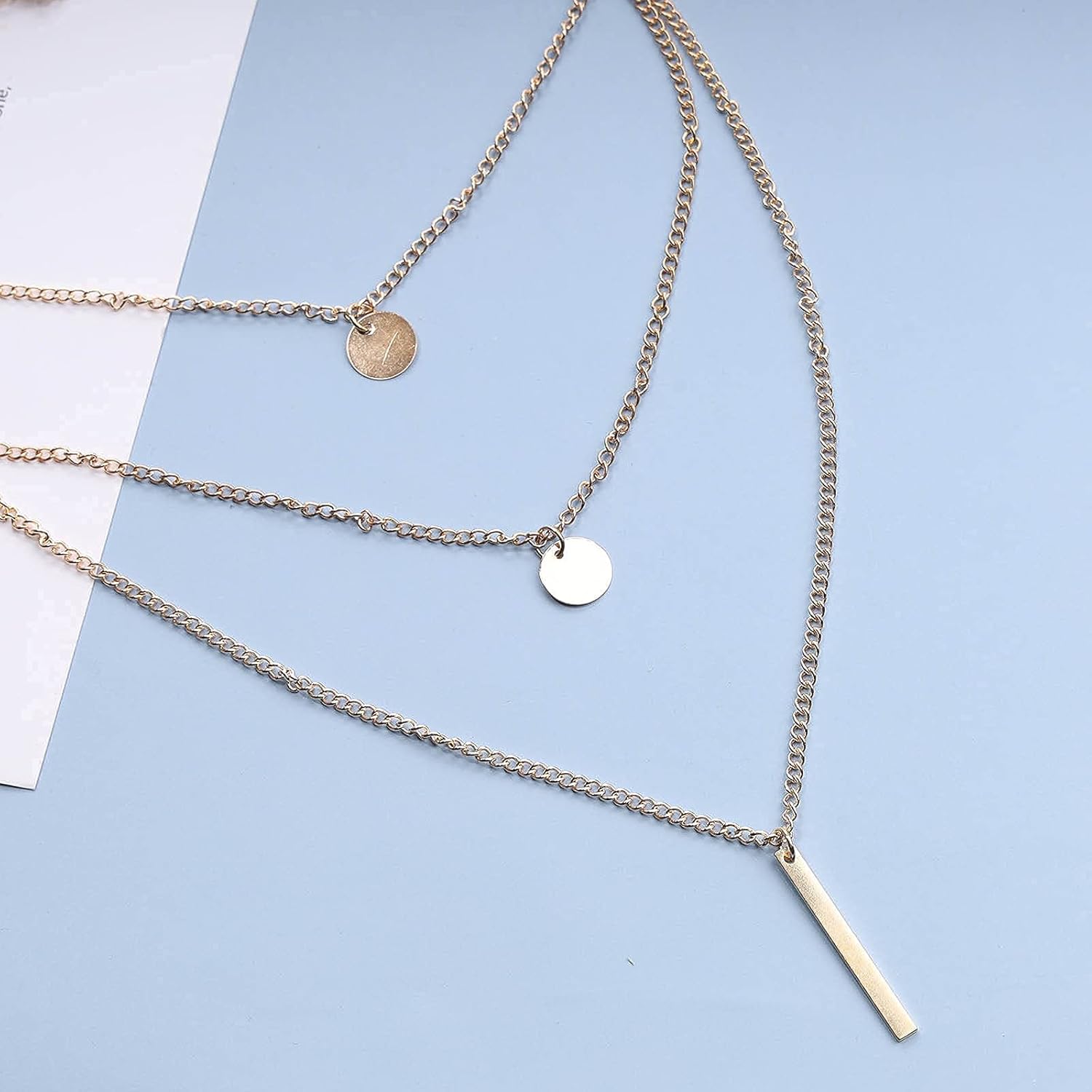 Boho Layered Coin Bar Necklace Gold Disc Pendant Necklace Chain Multi Layer Vintage Necklace Jewelry for Women and Teen Girls