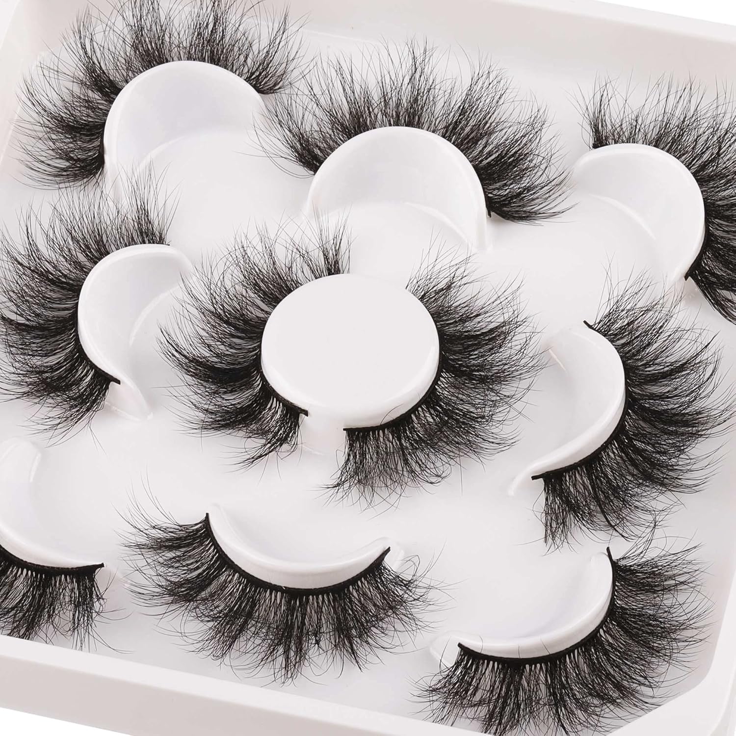 JIMIRE Flare Mink Lashes Fluffy Wispy False Lashes Pack Fluttery 10D Multi-dimensional Volume False Eyelashes 5 Pairs