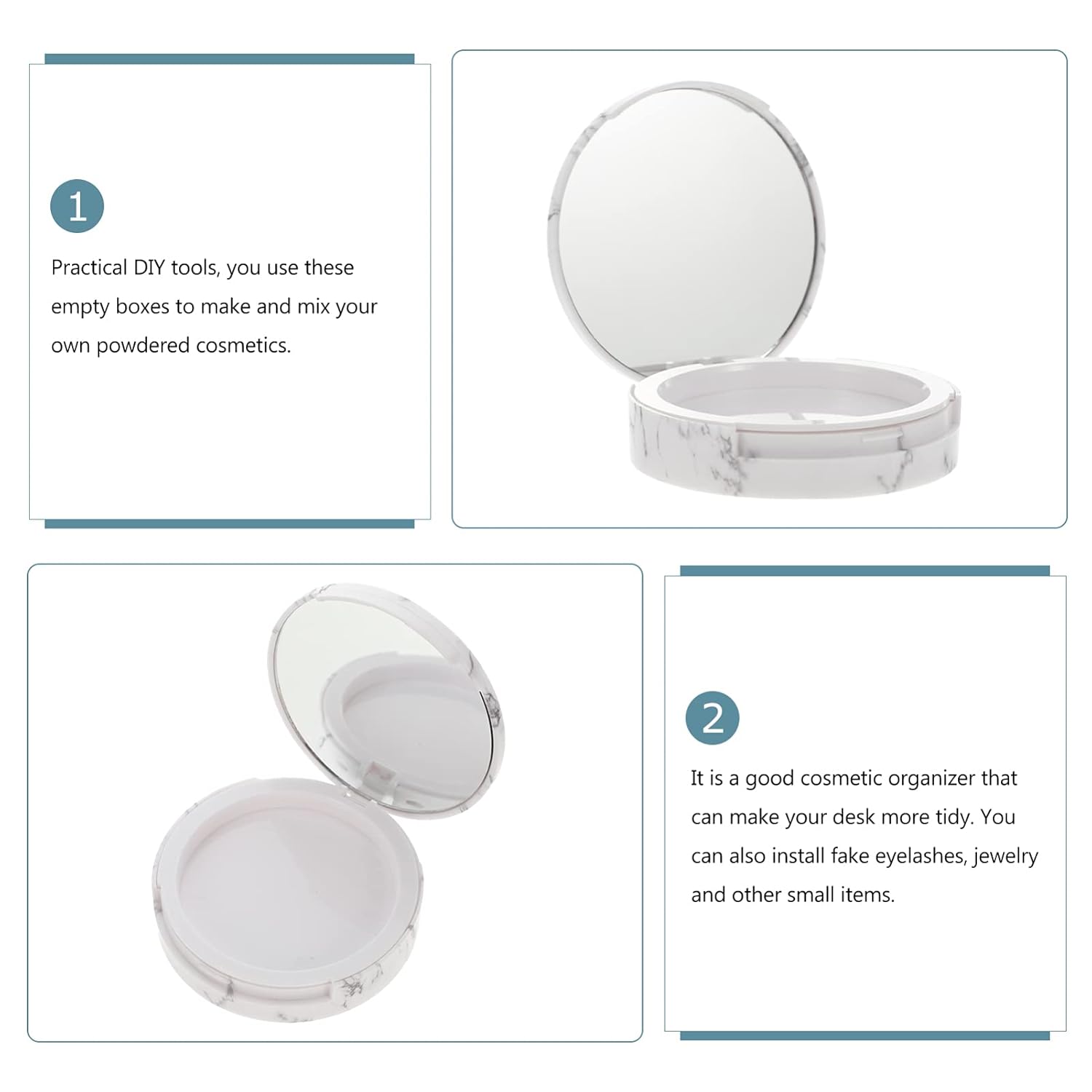 - Practical DIY tools that you use them to make and mix your own style powdered cosmetics.