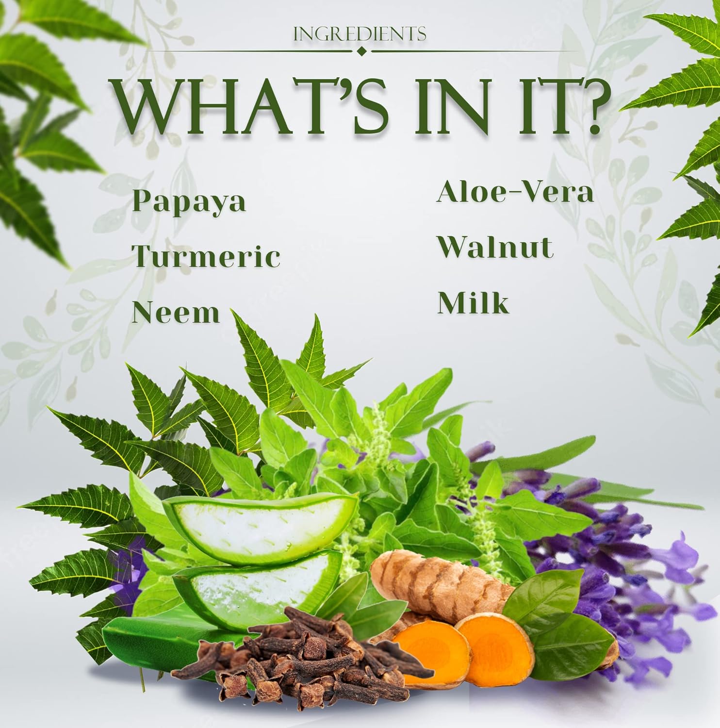 - Neem and Aloevera Face Wash (65ml) This is a mild face wash that helps treats acne & keeps the skin oil free. Known for its Anti- Inflammatory properties Neem & Aloevera combined clears your skin of impurities and keeps it hydrated.