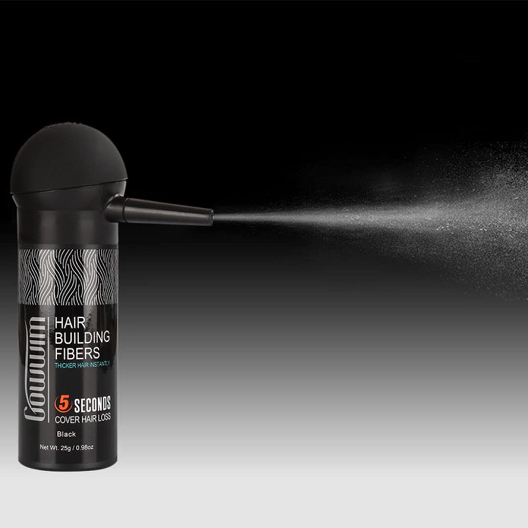 gowwim Hair Thickening Fibers 2-in-1 Kit Keratin Building Fibers, Spray Applicator & Hold Spray - Instantly Volumize Sparse Areas (Black)